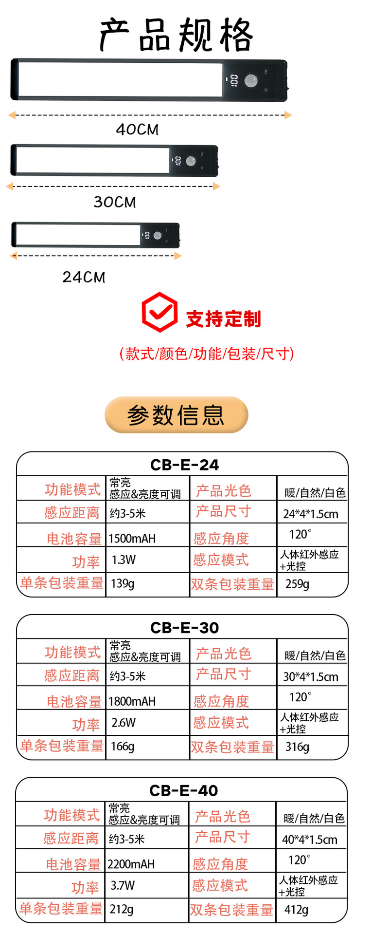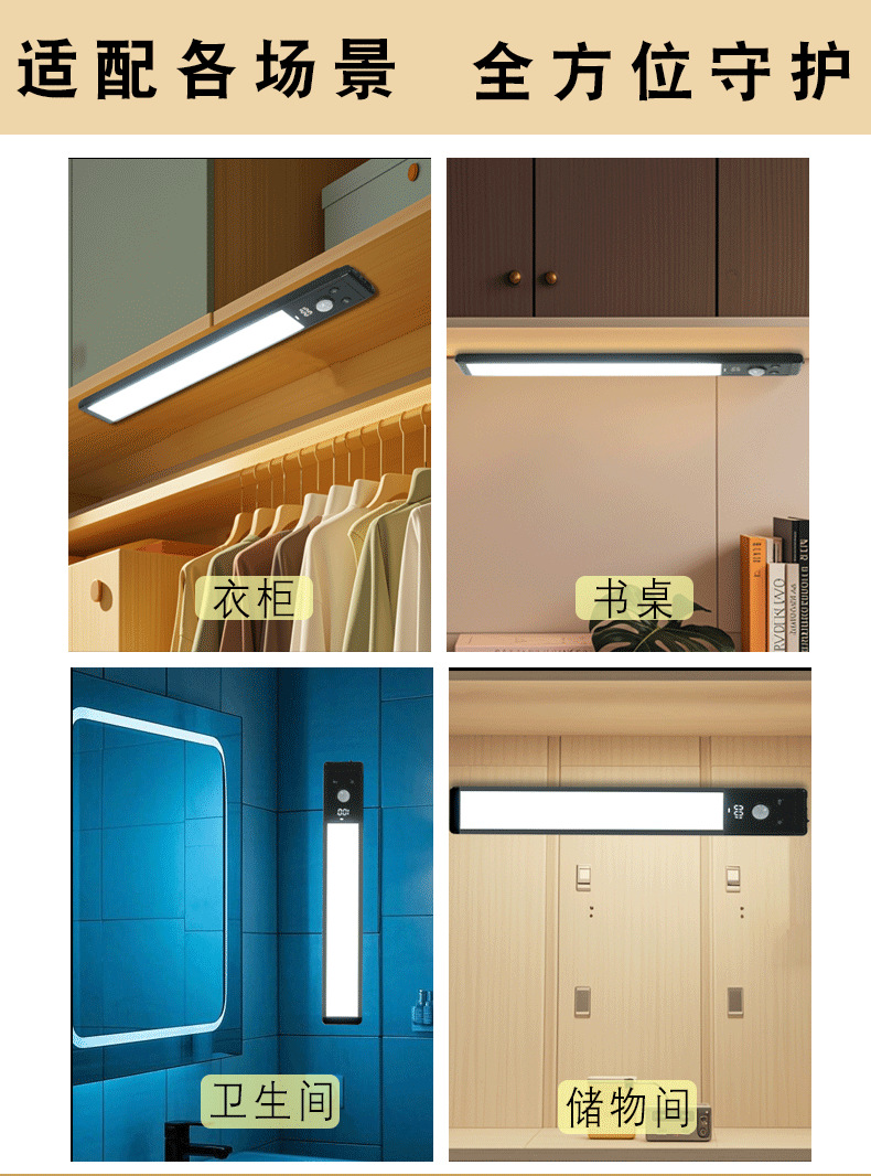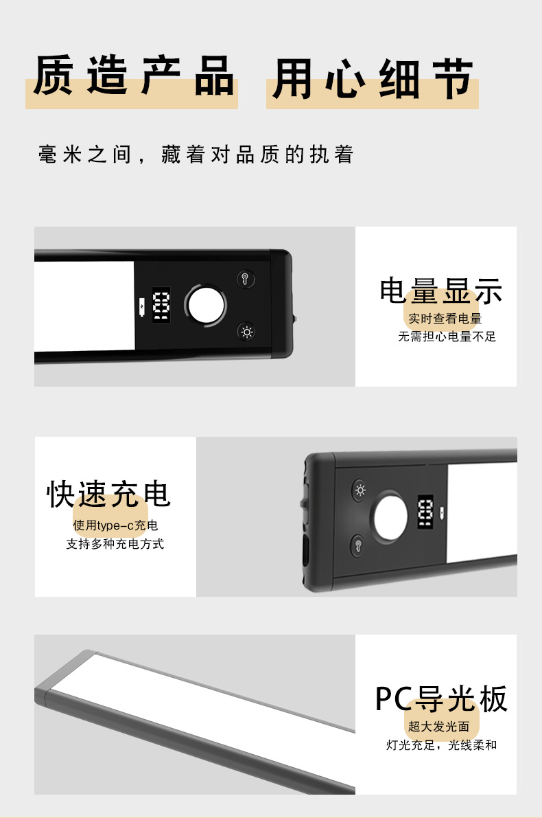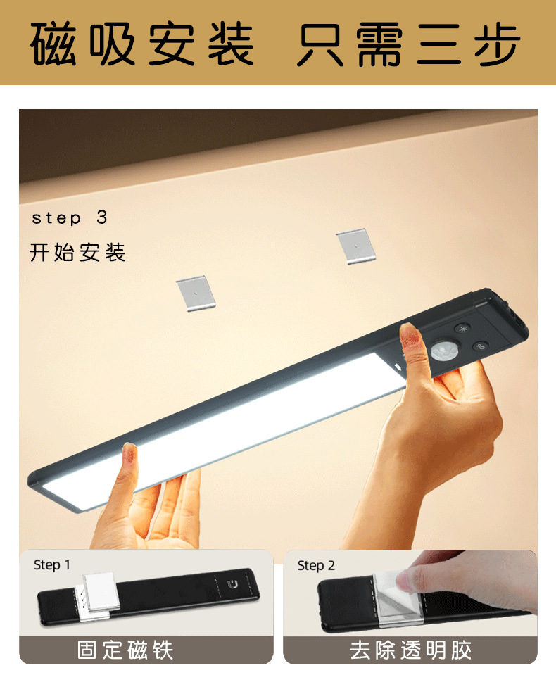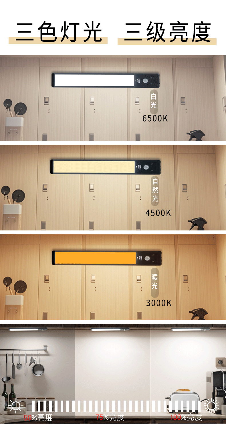 국경을 넘는 삼색 LED 인체 감지등 충전식 자가 접착 야간등 테이블 램프 캐비닛 스마트 센서등 알루미늄