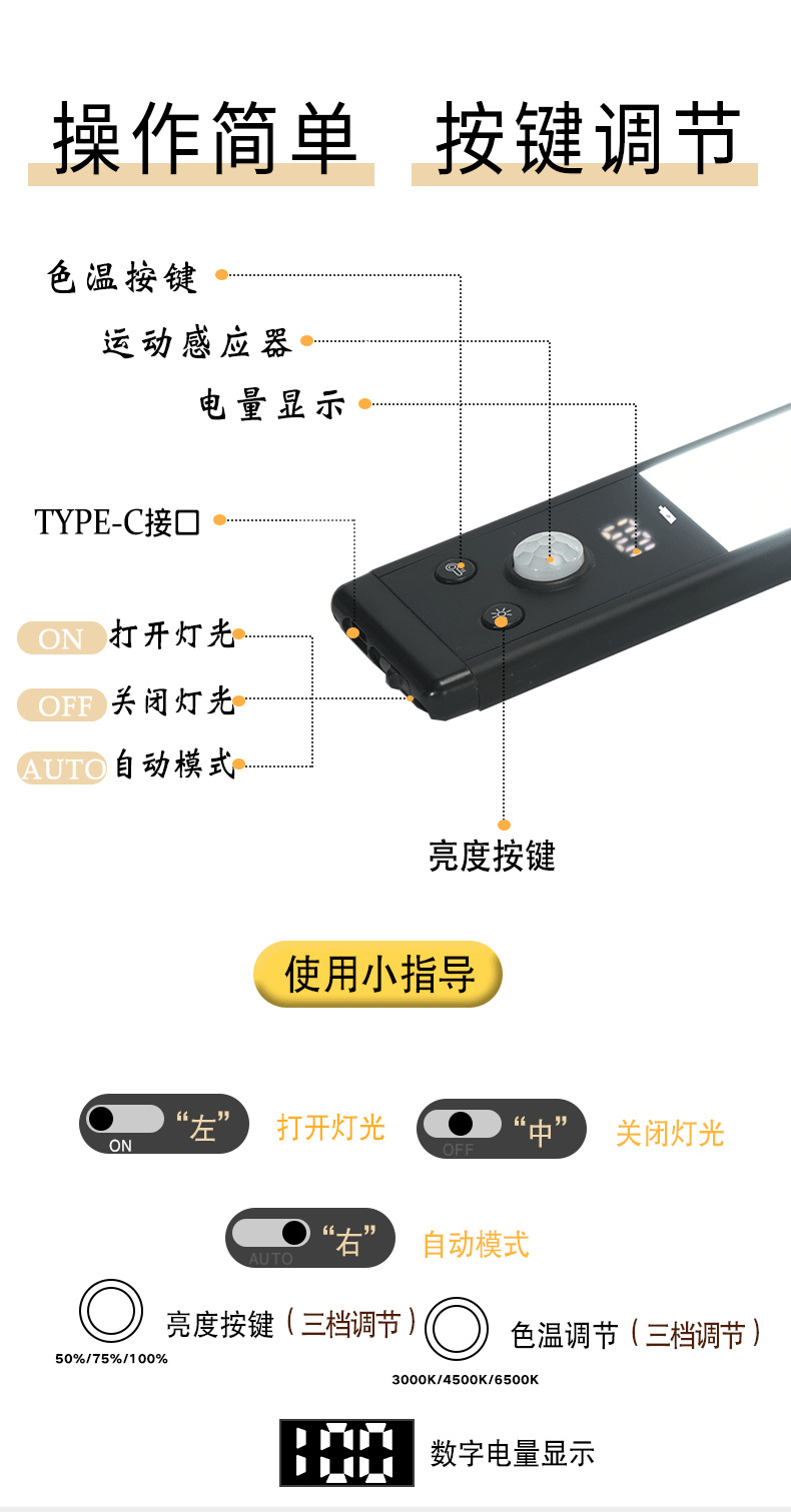 • [30CM 싱글팩] 디지털 디스플레이 + 인체 센서 + 3색 조명 + 버튼 조절