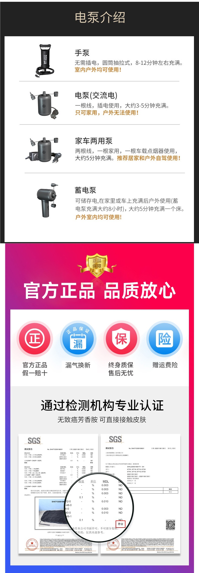 • [더블 대형 사이즈 폭 152cm 내장 베개] 축전펌프 + 수납가방