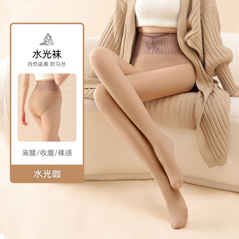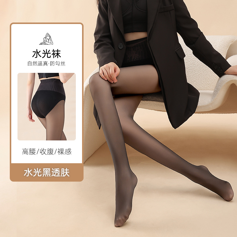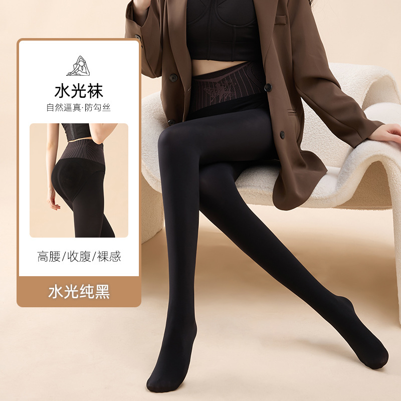 여성용 봄, 가을, 겨울용 벨벳 안감 두꺼운 누드톤 스타킹, 워터 글로우 블랙 실크, 블랙 투명 스타킹, 탄력 있는 바디스타킹스토어 가기