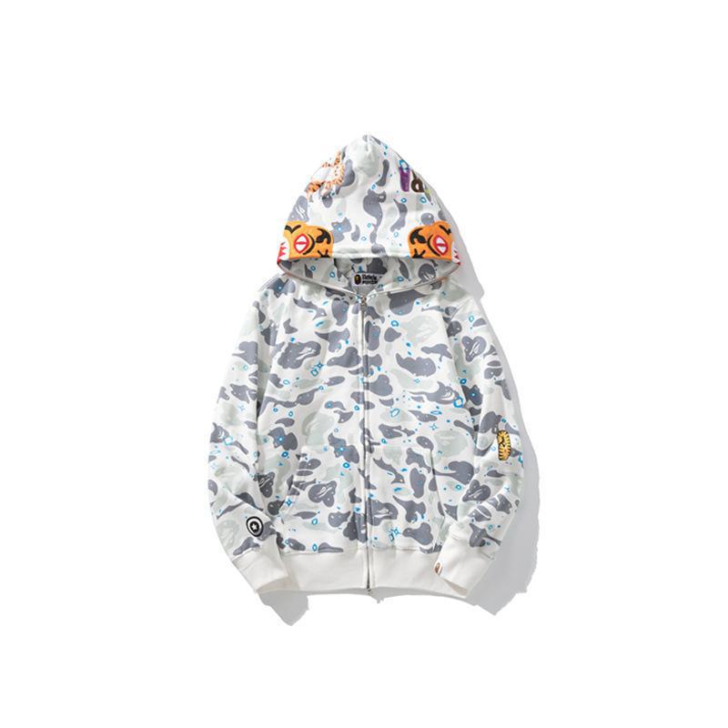 2024 새로운 패션 브랜드 국경 도매 새로운 남성과 여성의 바페 클래식 상어 위장 후드 카디건 지퍼 울