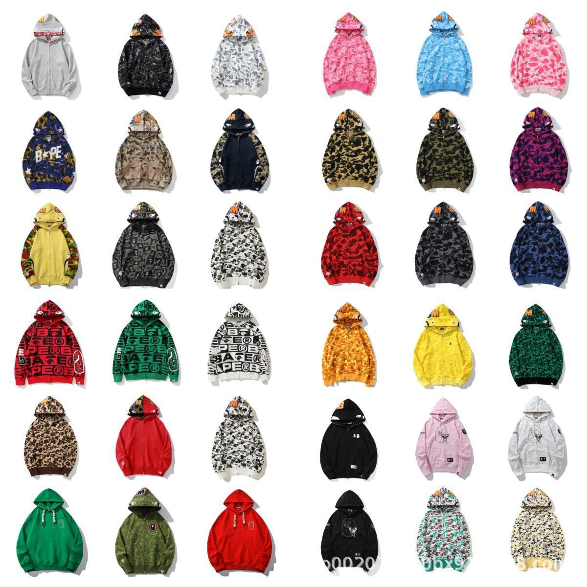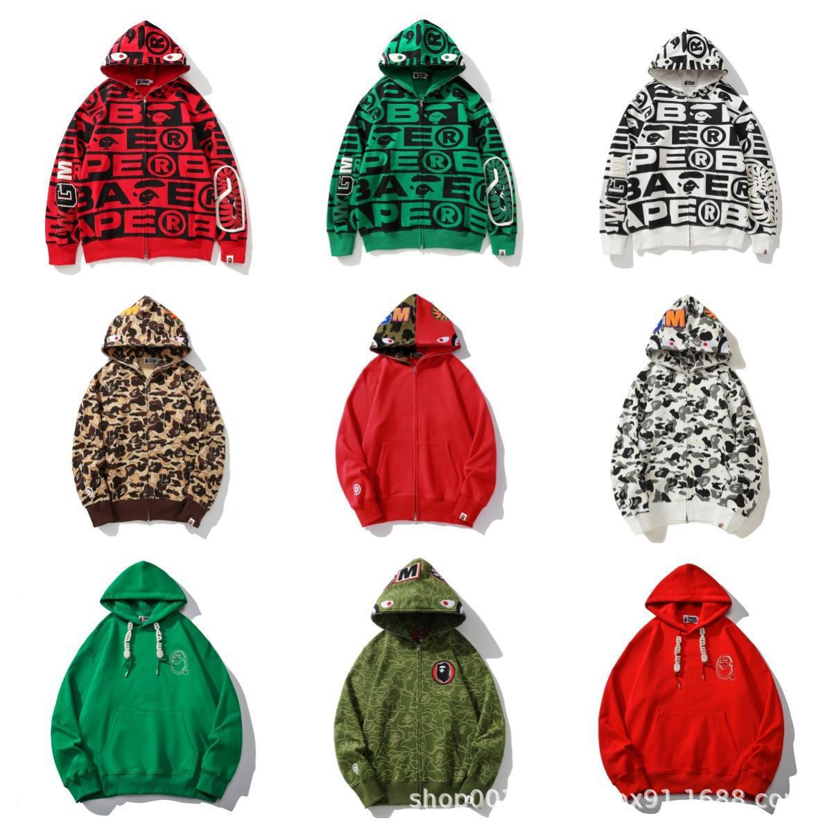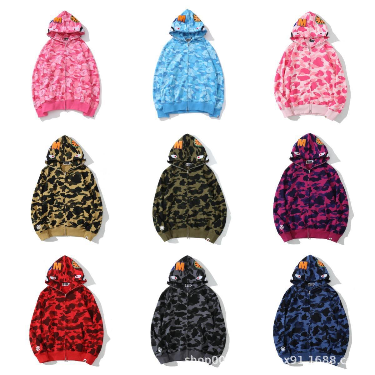 2024 새로운 패션 브랜드 국경 도매 새로운 남성과 여성의 바페 클래식 상어 위장 후드 카디건 지퍼 울스토어 가기