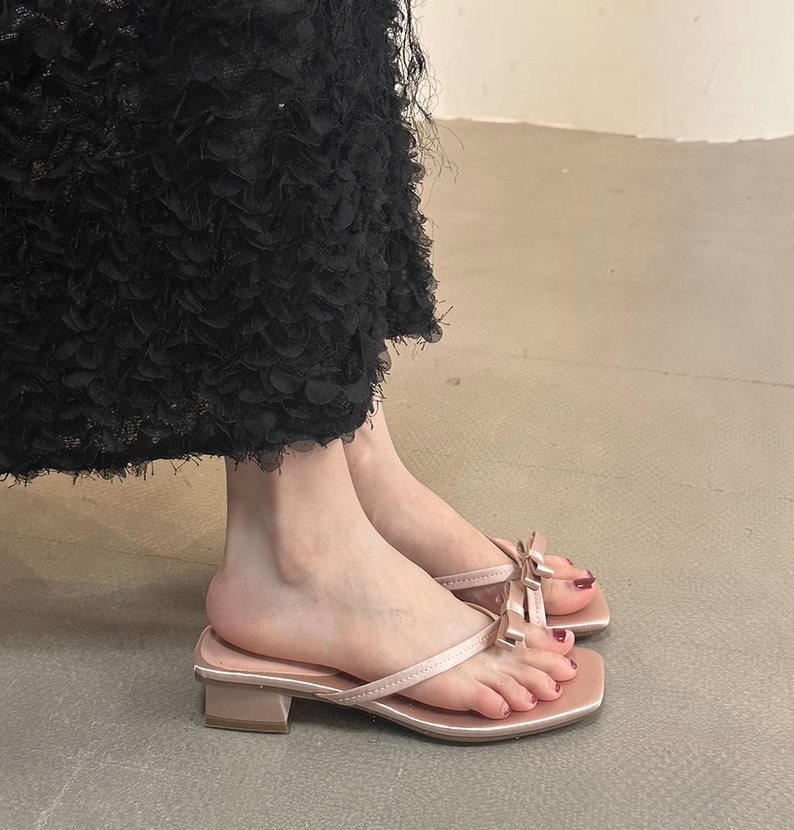 아름다운 발가락 신발 요정 샌들 작은 휴가 청키 활 슬리퍼 프랑스 2025 새로운 샌들 클립 여름스토어 가기