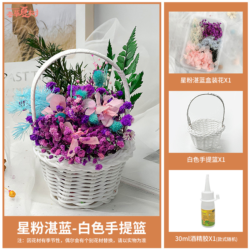 • 흰색 천연 바구니에 영원한 꽃 [스타 핑크와 블루]#$%&()_+?[]