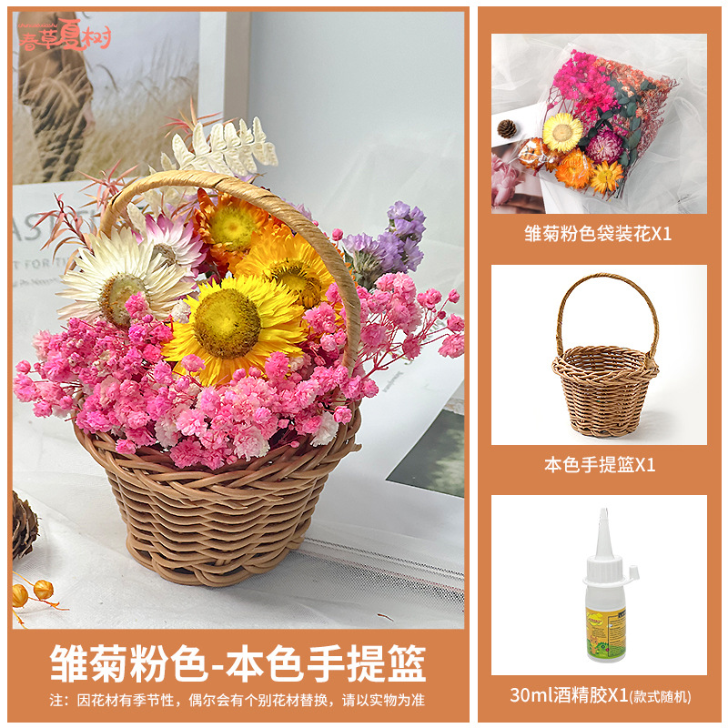 제 38 회 축제 선물 영원한 꽃 diy 소재 결혼식 축제 휴대용 꽃 바구니 말린 꽃 장면 레이아웃스토어 가기