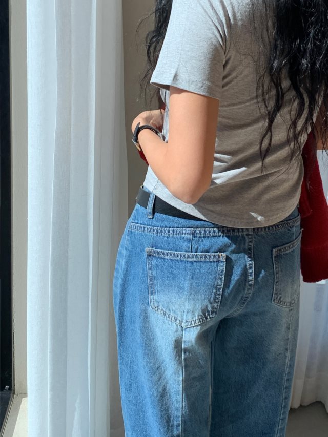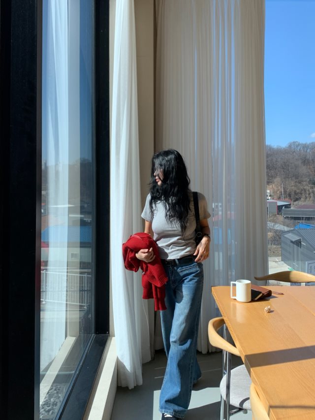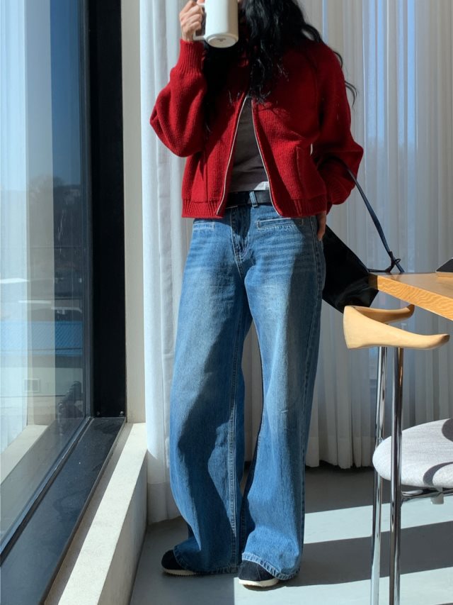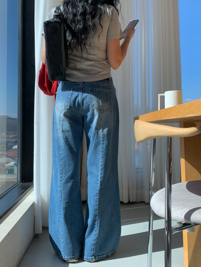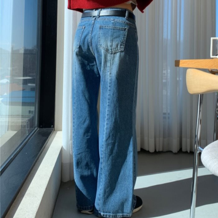 높은 허리 느슨한 넓은 다리 청바지 여성의 2025 새로운 슬림 핏 바지 올 매치 캐주얼 스트레이트 청바지스토어 가기