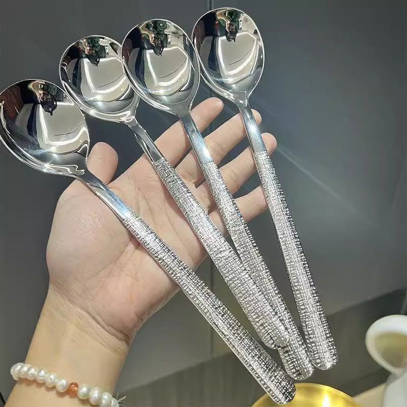 숟가락 가정용 긴 손잡이 망치 숟가락 디저트 스푼 한국식 인터넷 레드 스푼 고 부가가치 스푼 다이닝 스푼 스테인리스 스틸