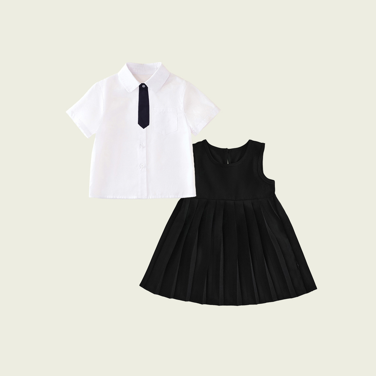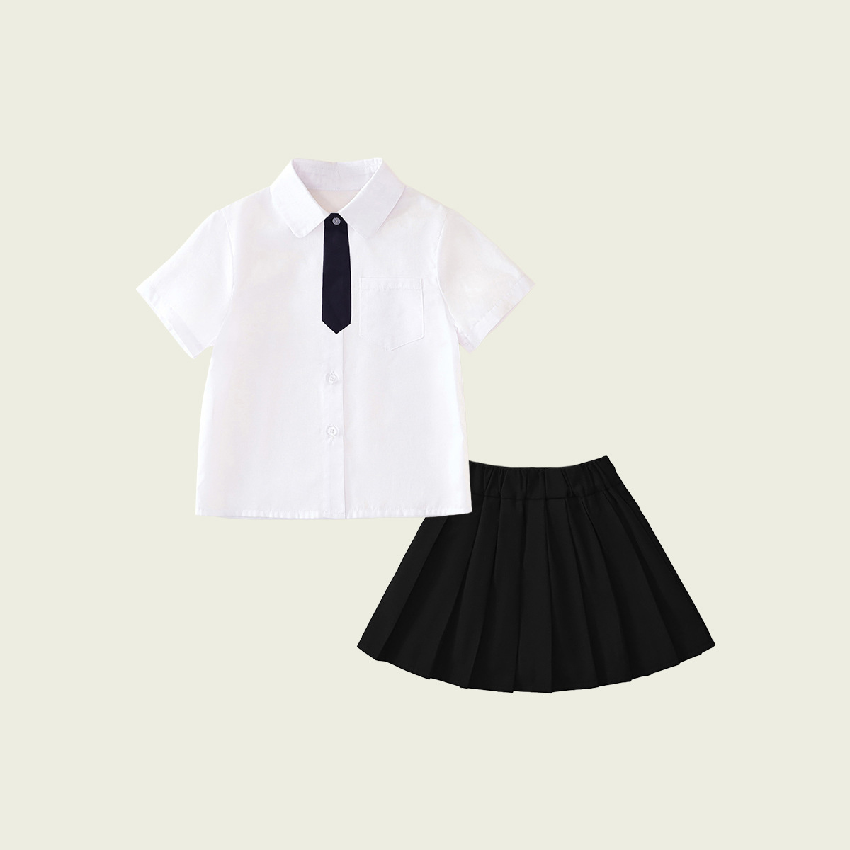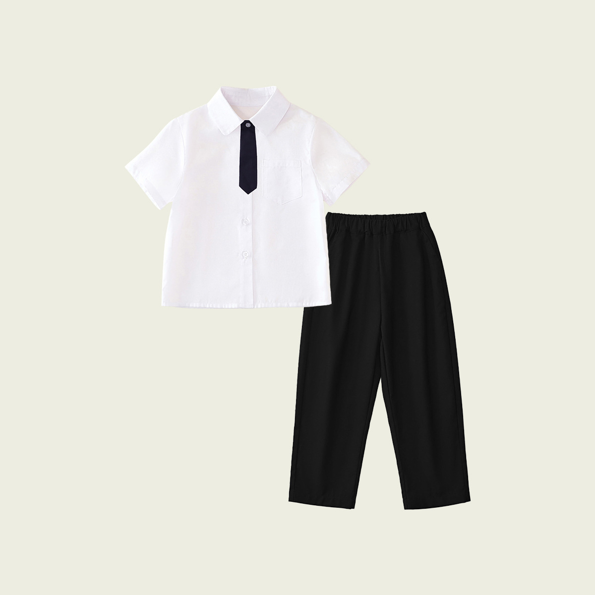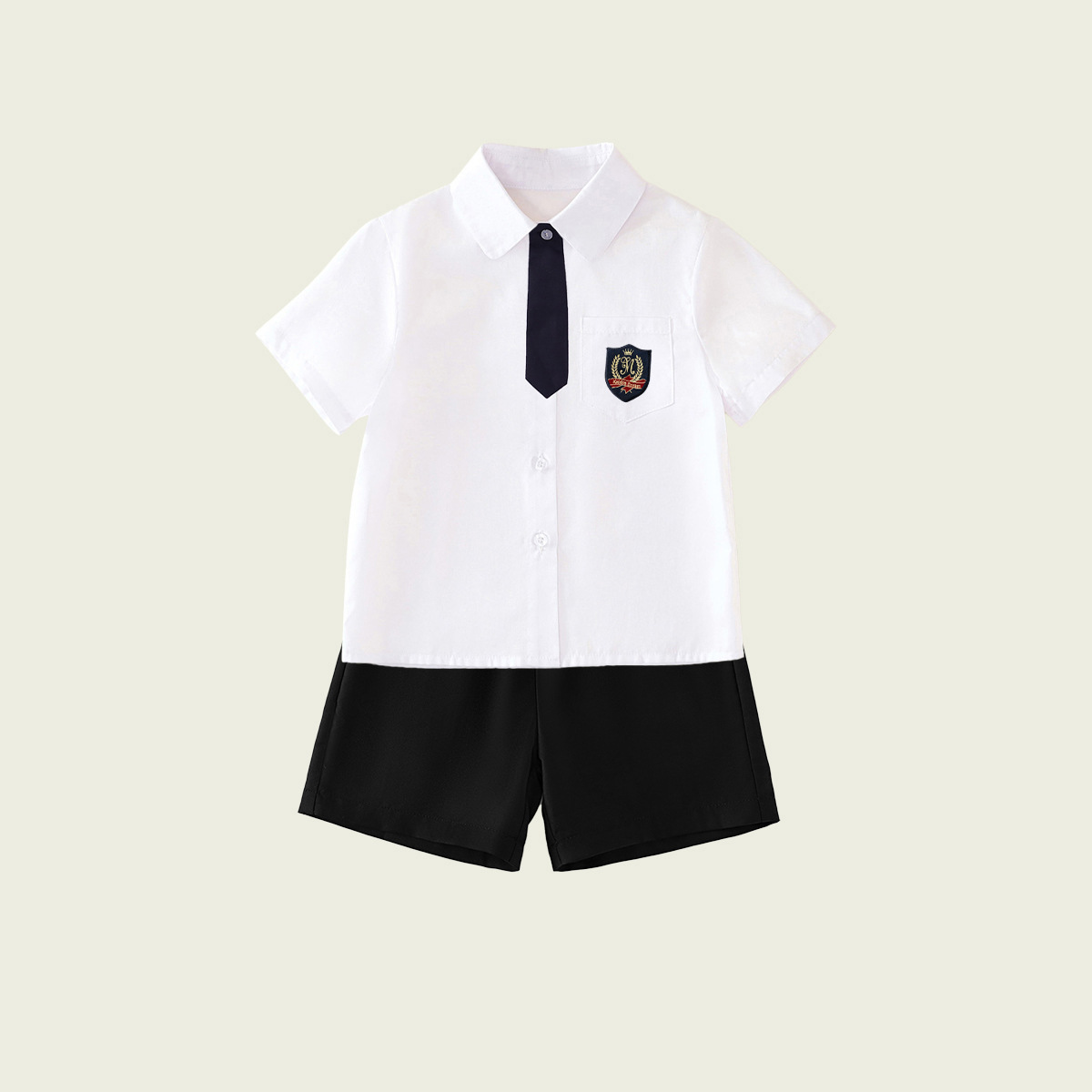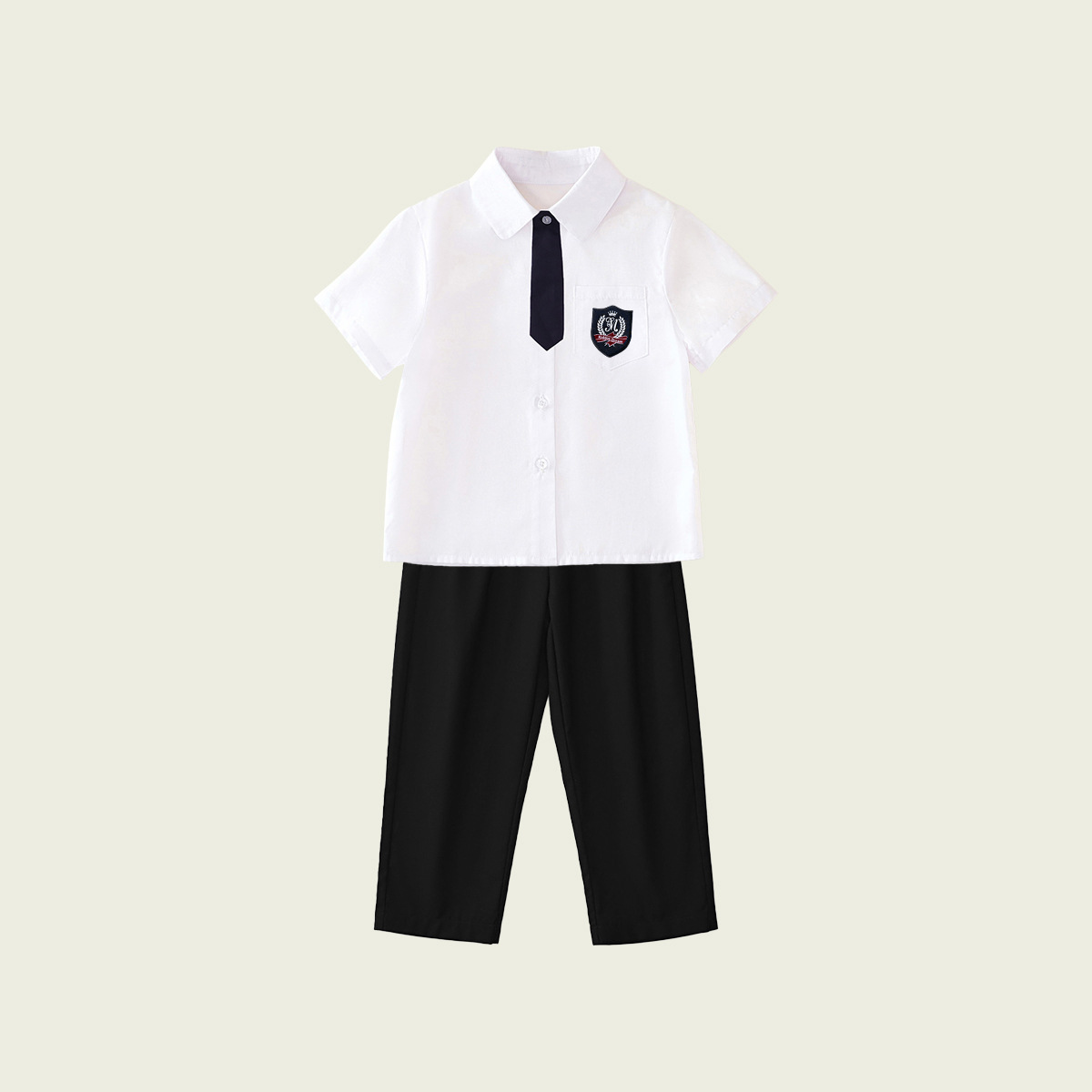 죽 학교 교복 2025 여름 새 소년 소녀 대학 스타일 흰색 셔츠 세트 졸업 시즌 호스트 의상