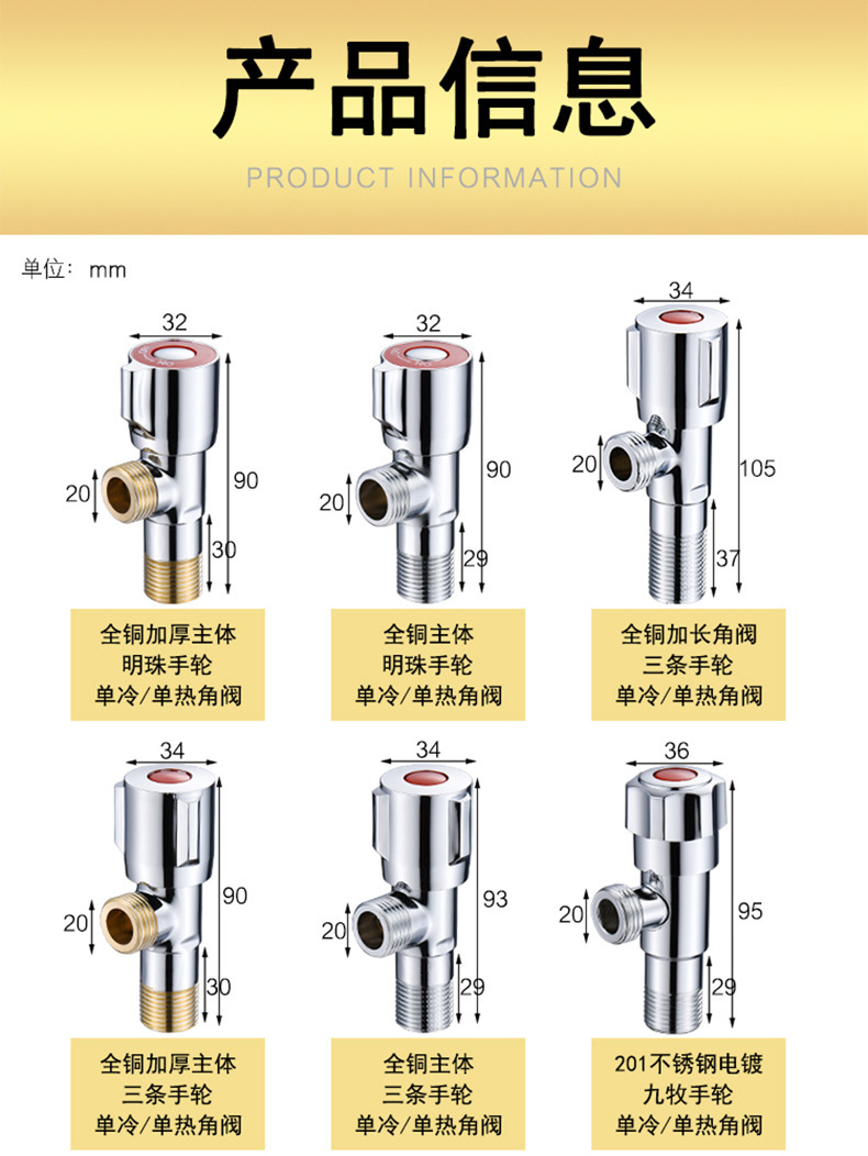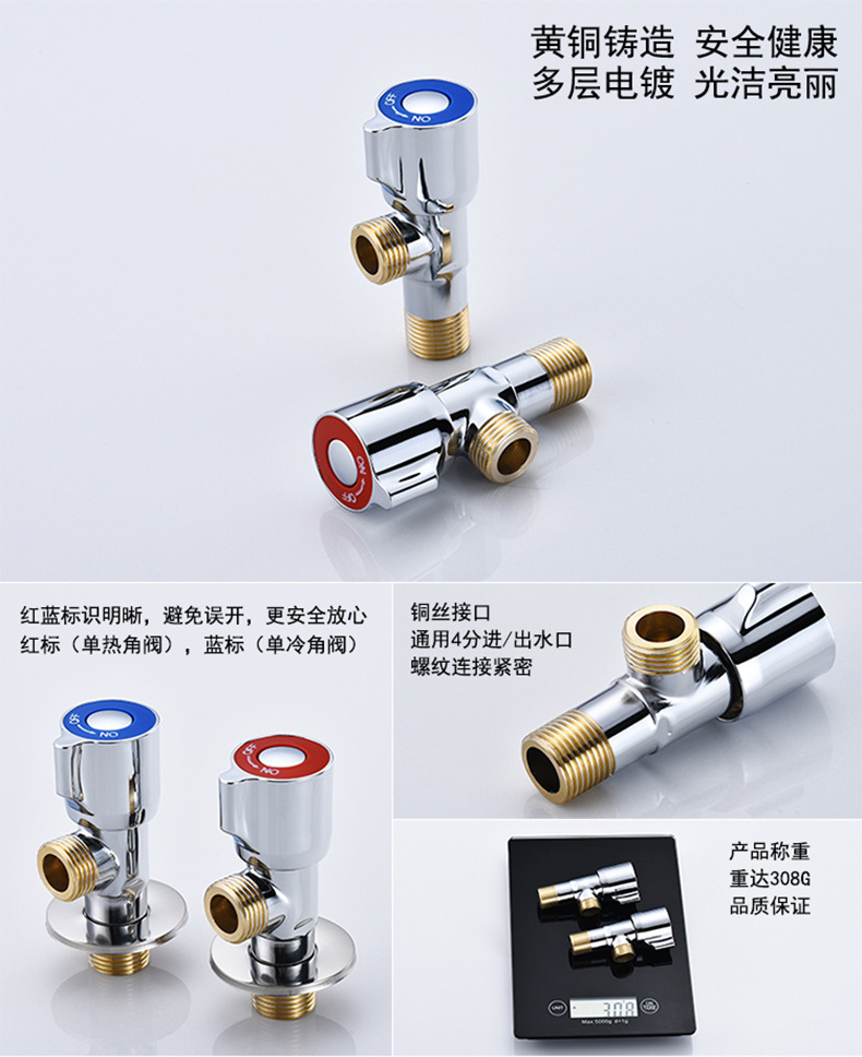 304 스테인레스 스틸 삼각형 밸브 냉수 및 온수 4 점 모든 구리 각도 밸브 온수기 2 개 가정용 변기 밸브 1 개
