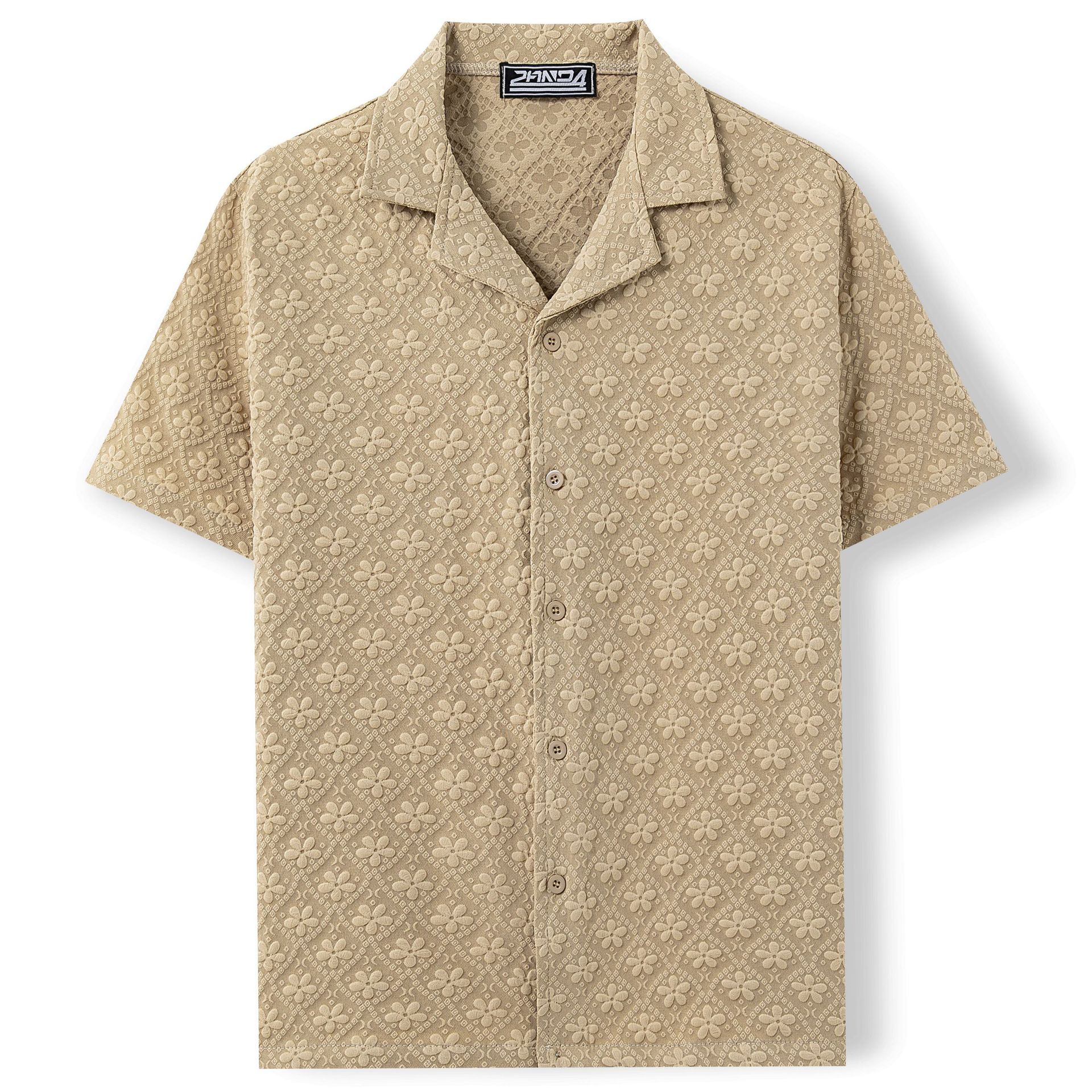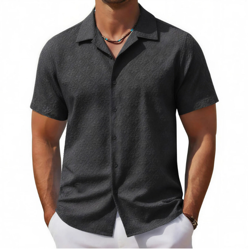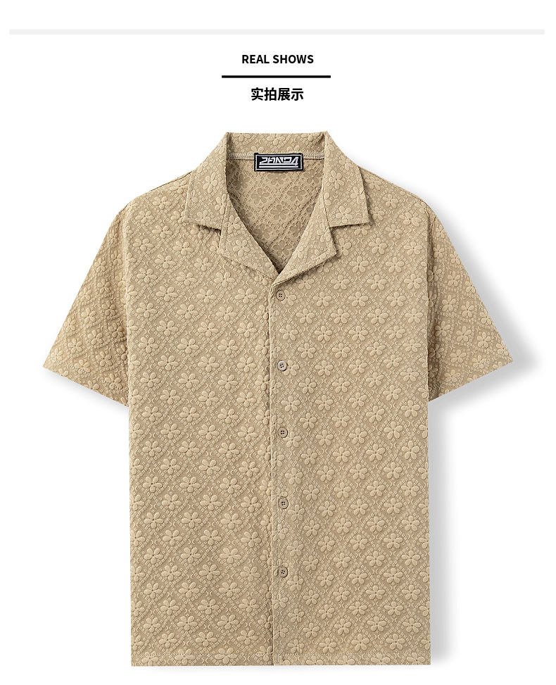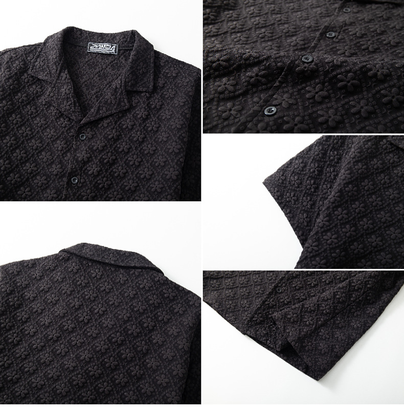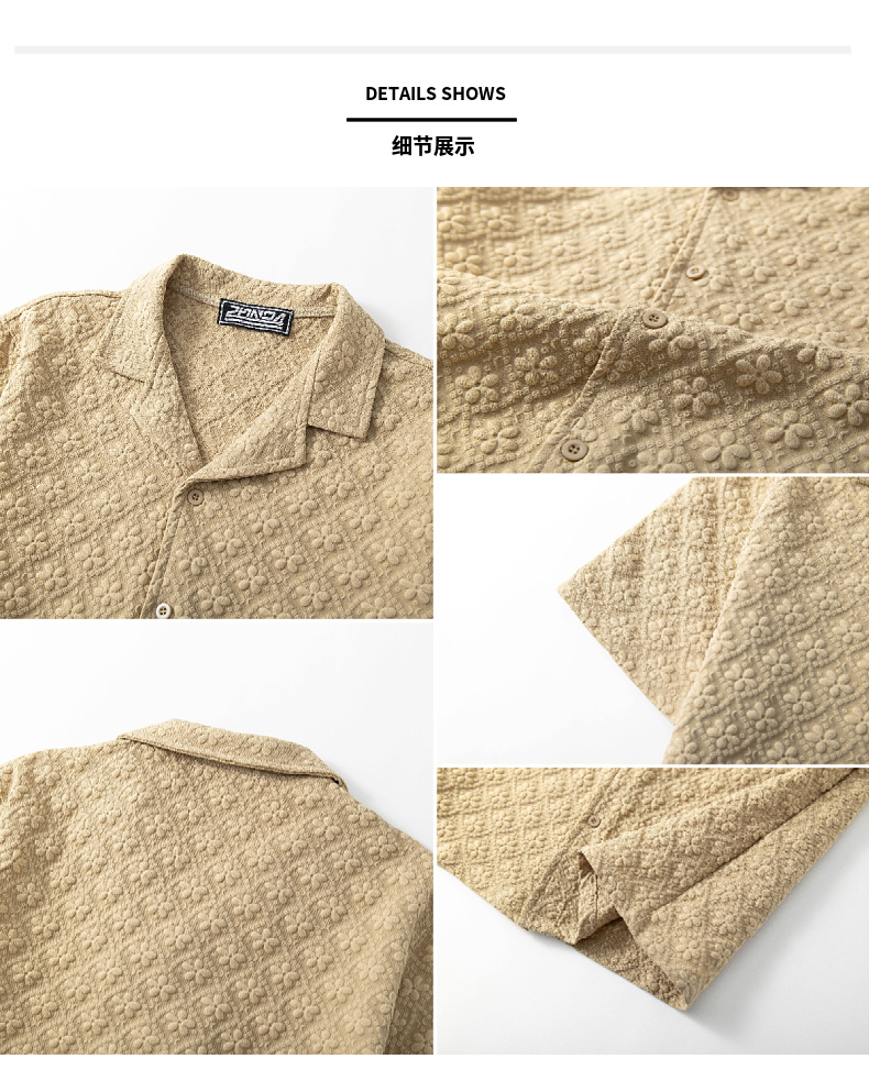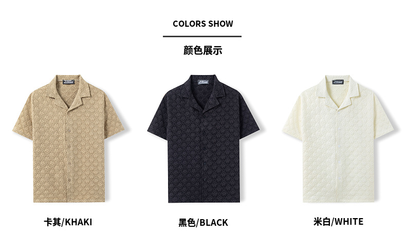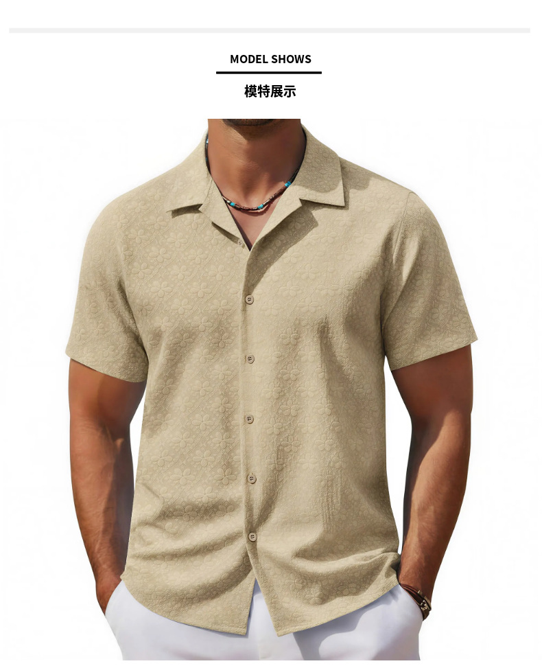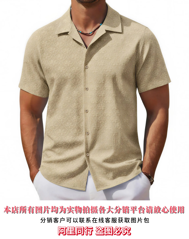 대외 무역 크로스 보더 남성 의류 유럽과 미국 여름 남성 캐주얼 셔츠 자카드 원단 쿠바 칼라 반팔 셔츠 A0301