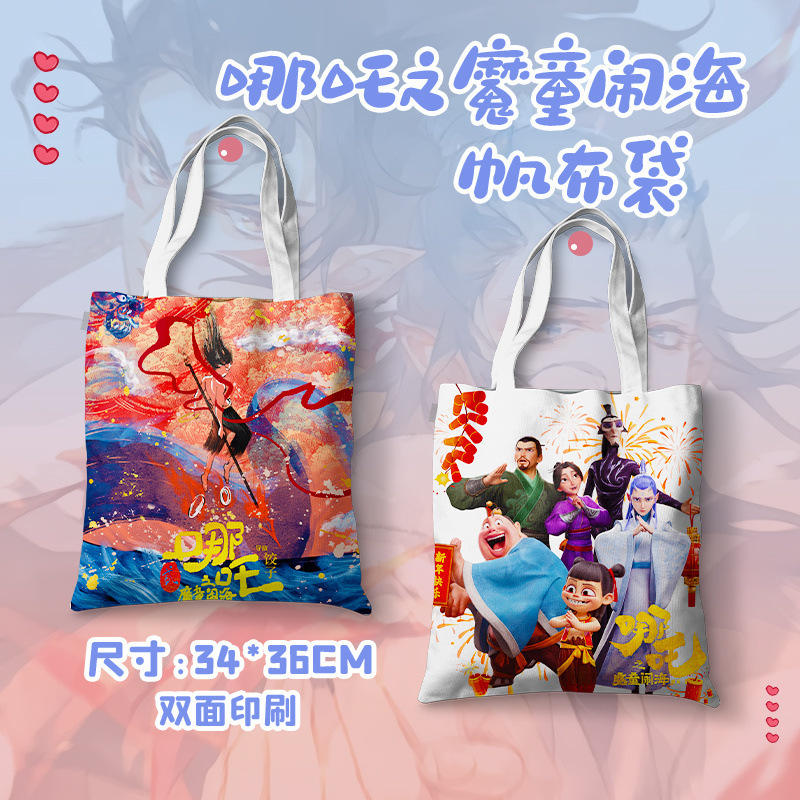 Nezha Devil Boy Sea 양면 캔버스 가방 39cmX36cm 대용량 휴대용 캔버스 가방 숄더백 스쿨백스토어 가기