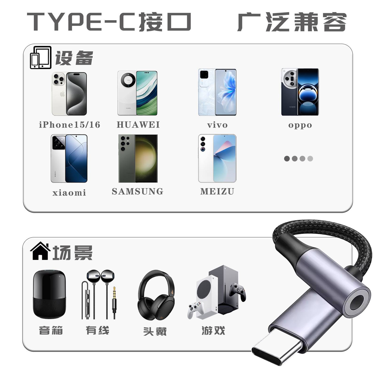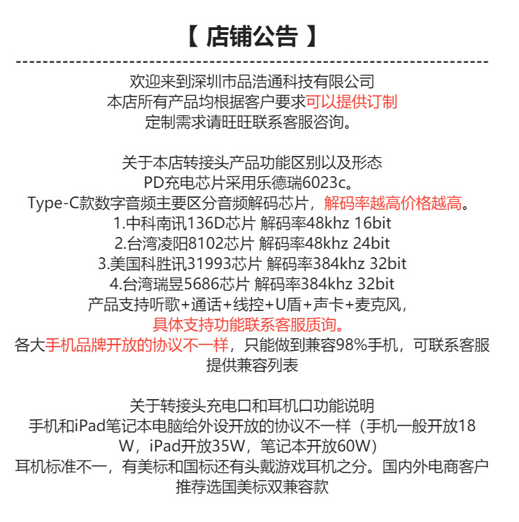 Type-c手机转接头 3.5mm耳机转接线 苹果转接线