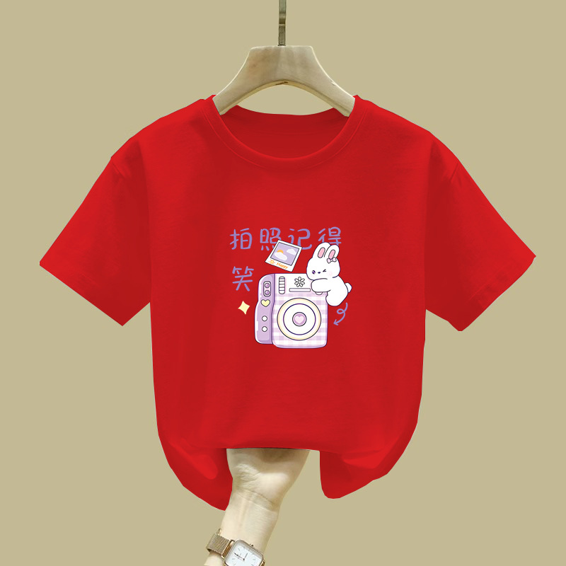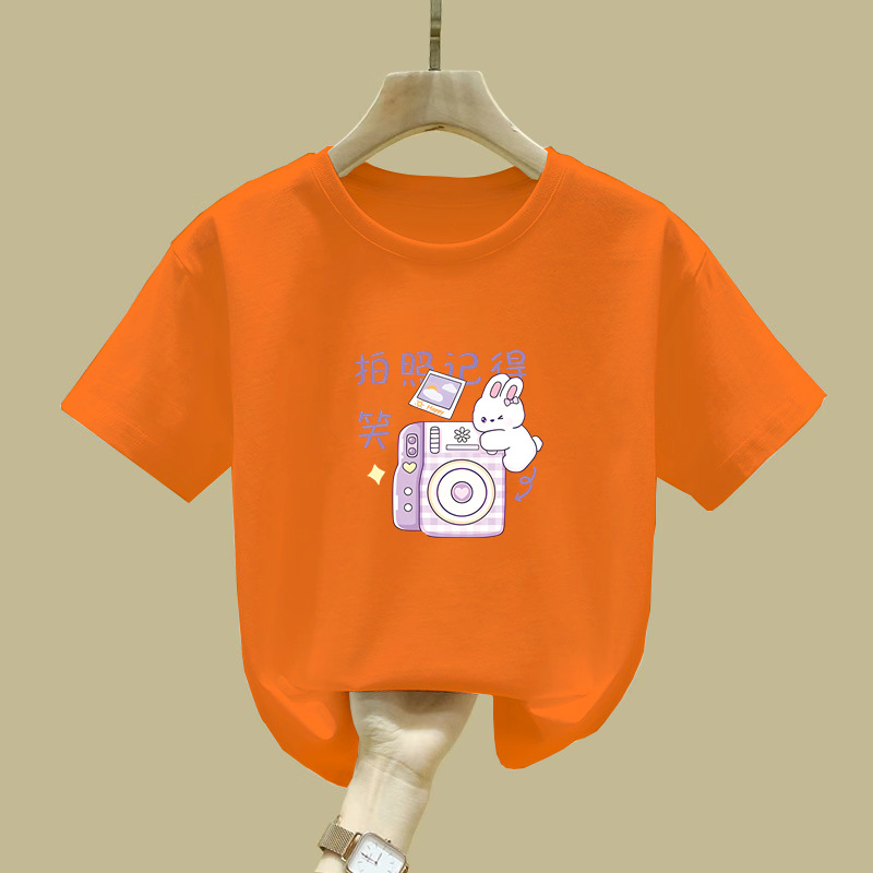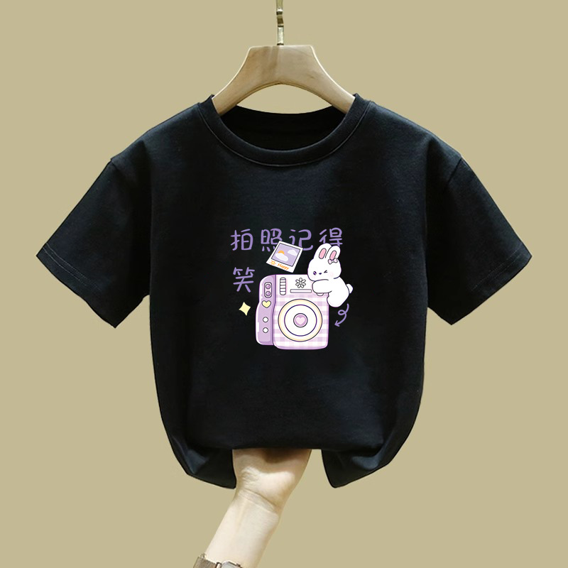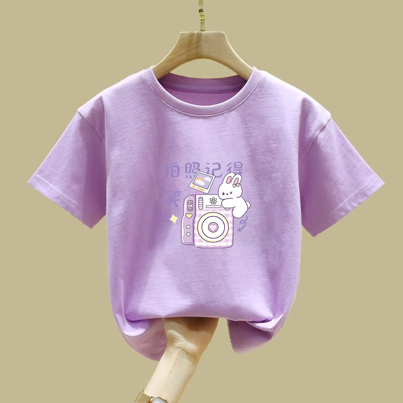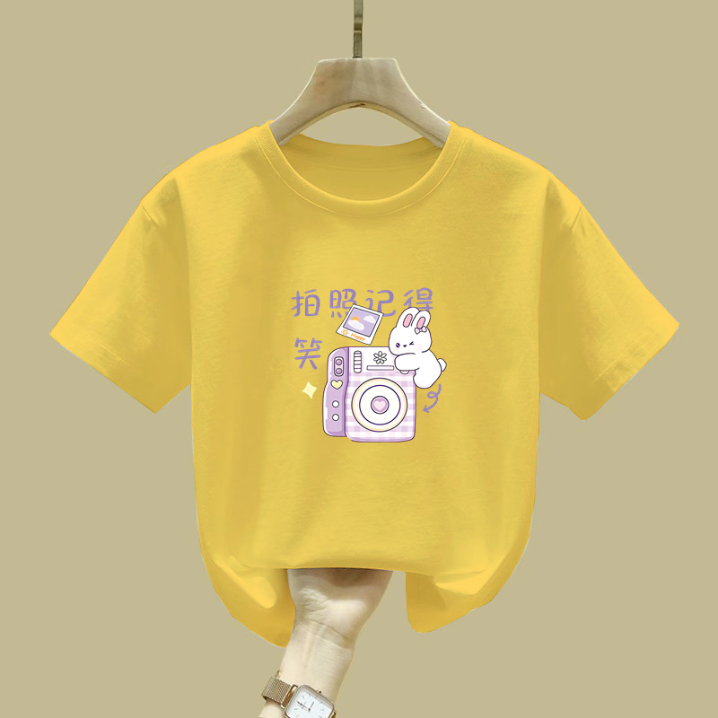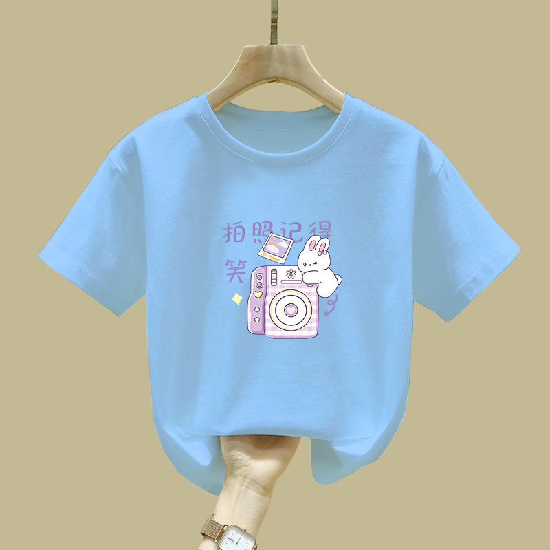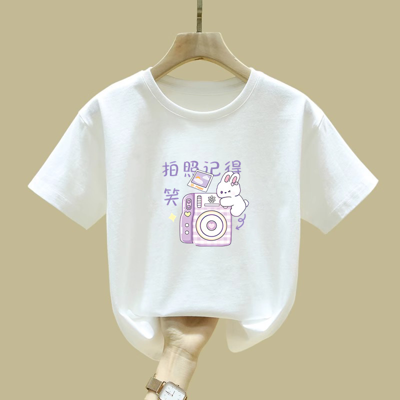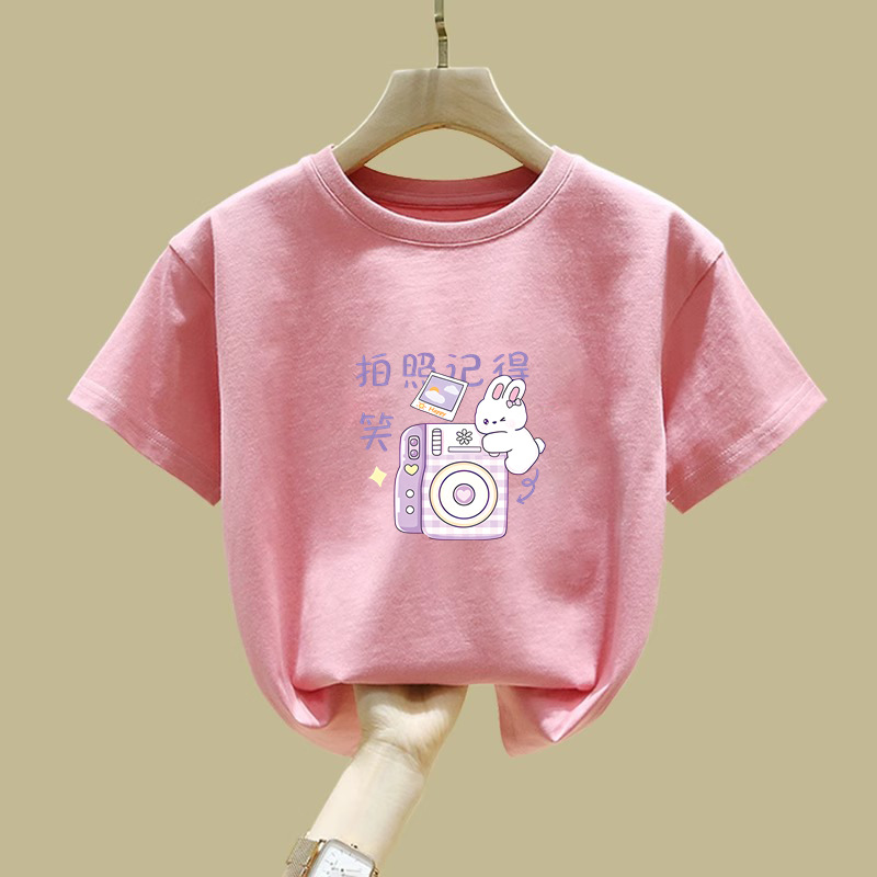 2372 # 면 어린이 반소매 티셔츠 여름 새 소녀 만화 인쇄 반소매 최고 아기 루즈 티셔츠스토어 가기