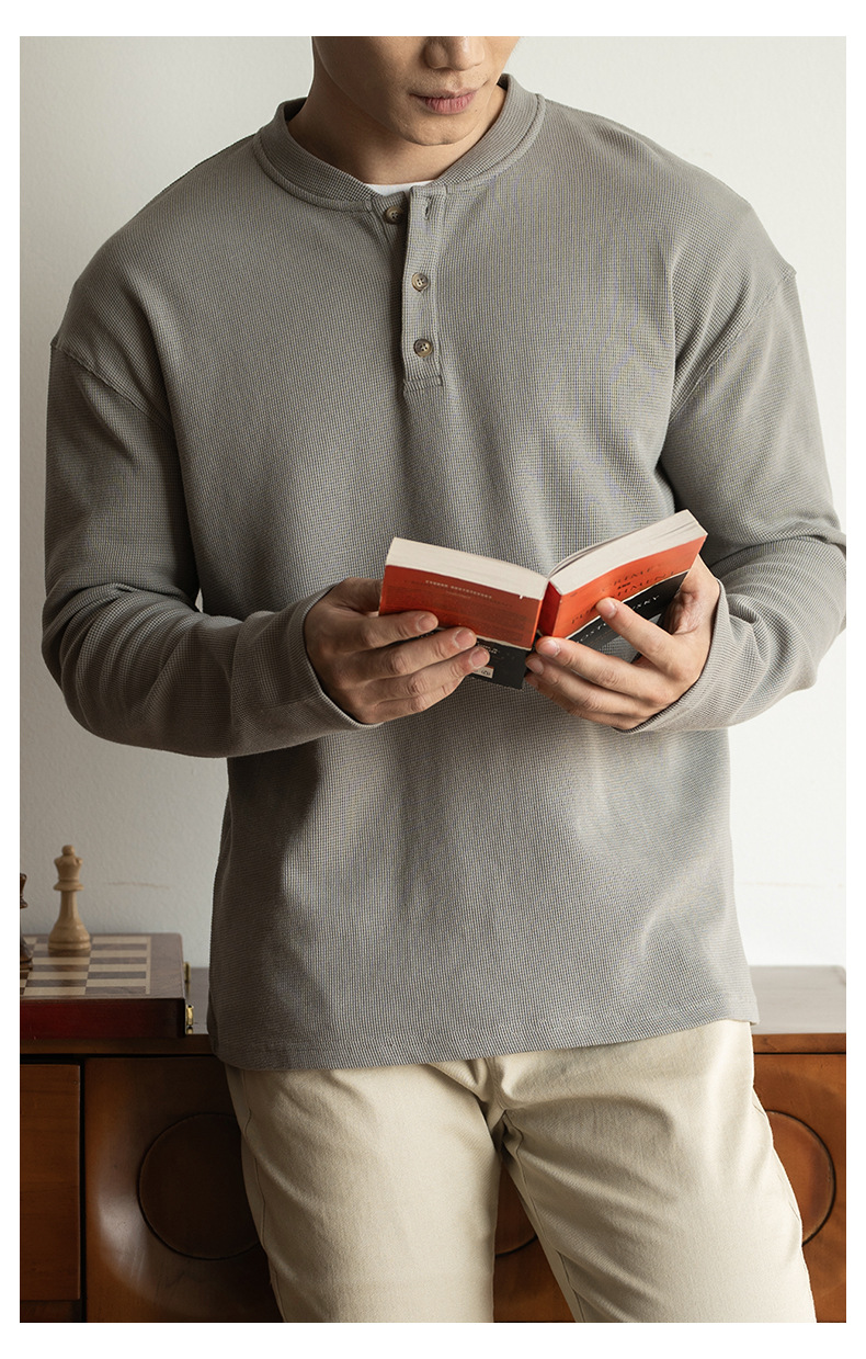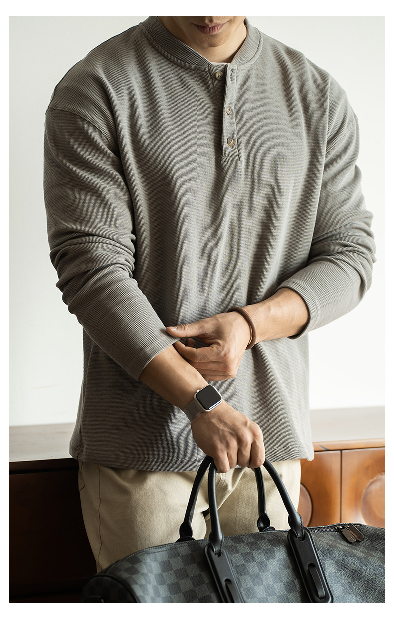 [도시 레저 시리즈] 와플 야구 칼라 긴팔 티셔츠 남자 2025 봄 스웨터베이스 헨리 셔츠