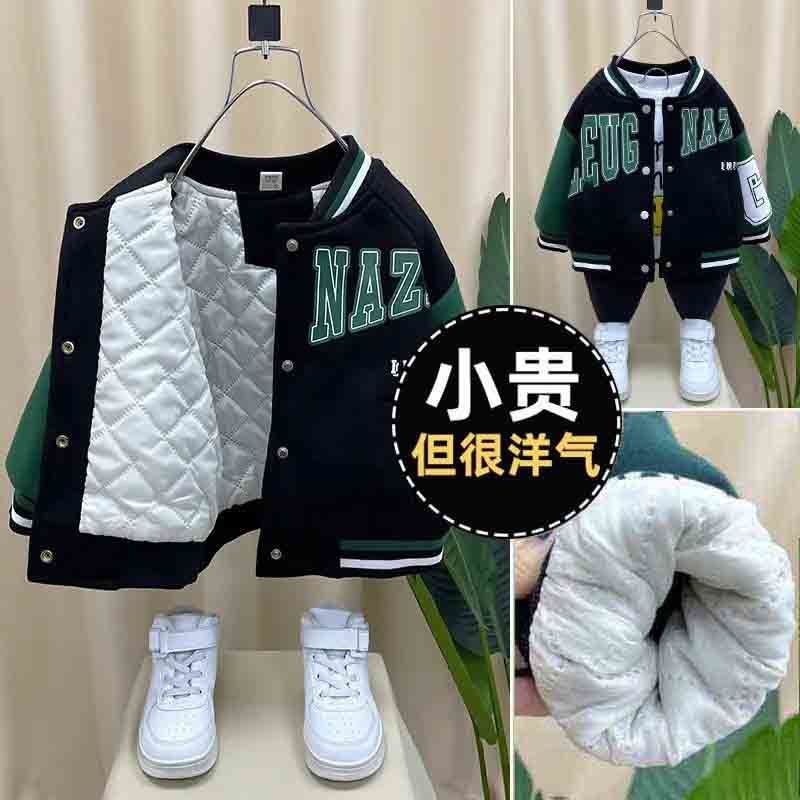소년 코트 2021 년 봄과 가을 새로운 어린이 가을 겨울 옷 아기의 최고 서양 스타일 두꺼운 야구 세트 재킷 트렌디스토어 가기