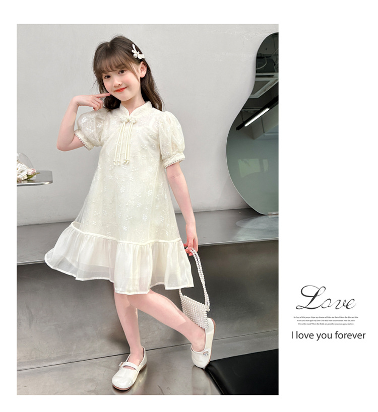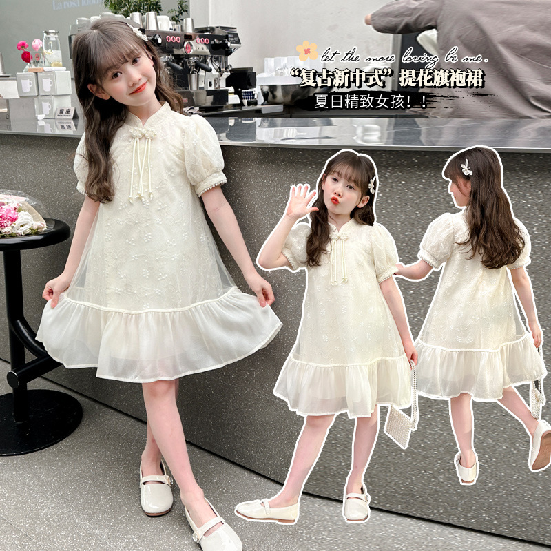 소녀의 빈티지 청삼 새로운 중국 스타일 원피스 공주 스커트 여름 2025 스타일 소녀의 생일 원피스스토어 가기