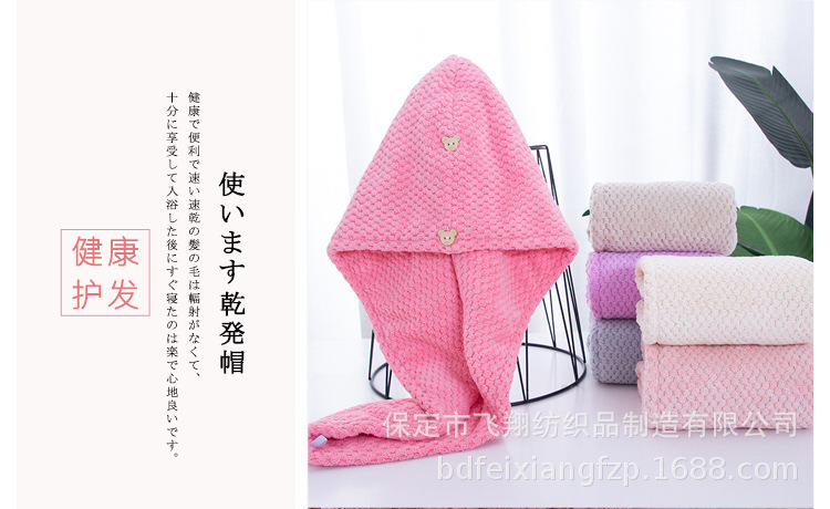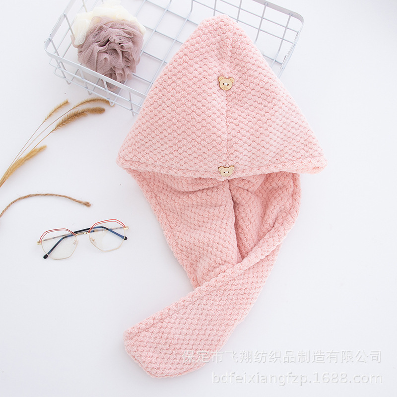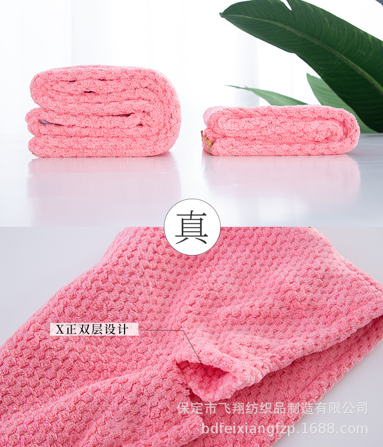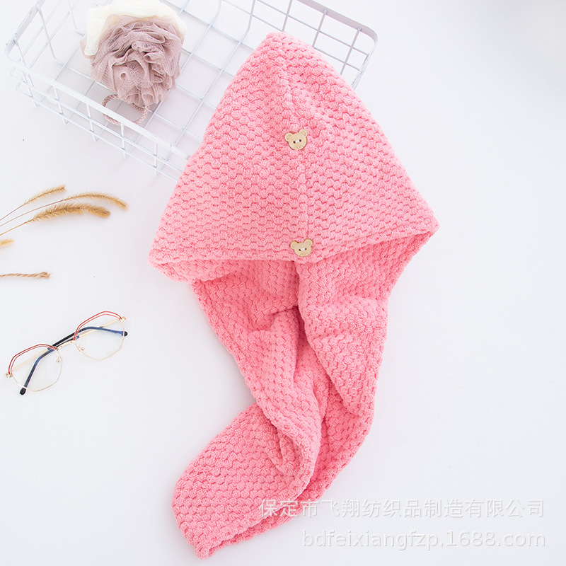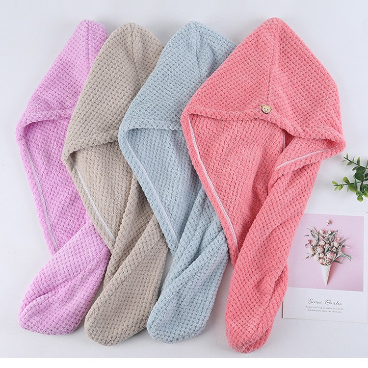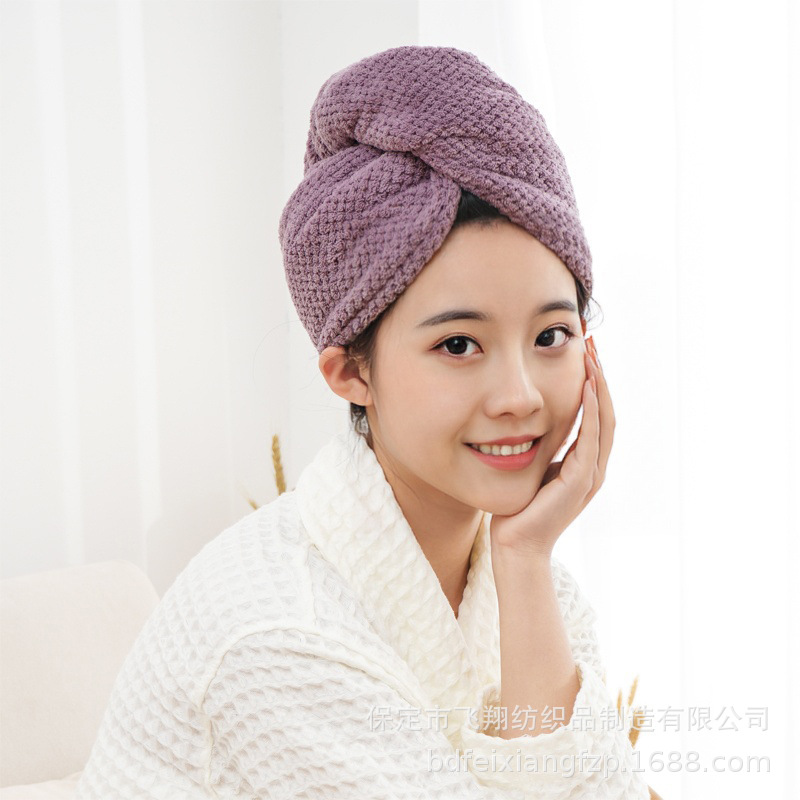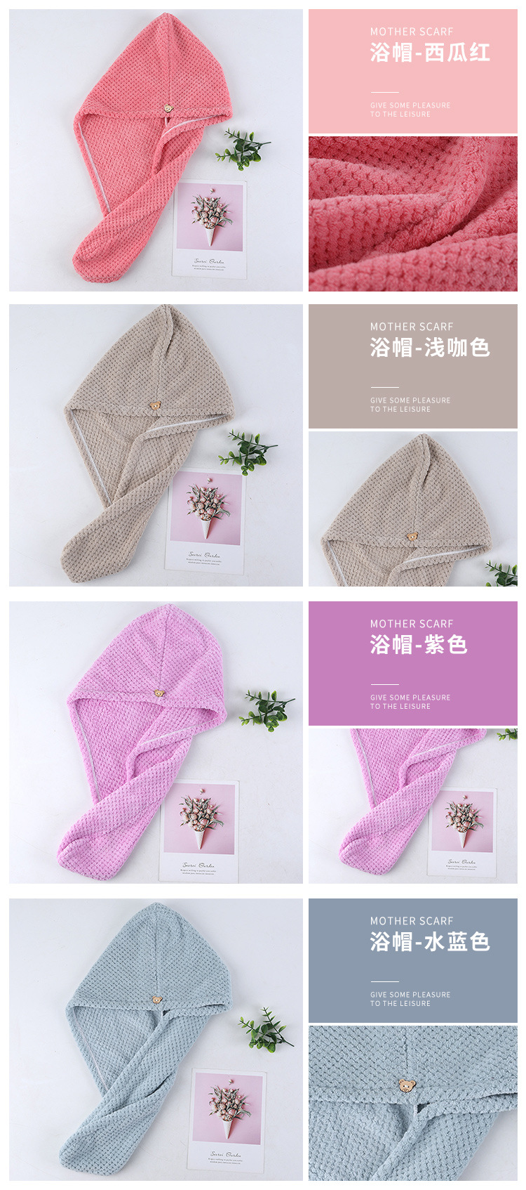 욕실용 모자 이중층 산호 벨벳 파인애플 패턴 흡수성 두꺼운 건조 모자 머리 감기용 헤어캡 160g 헤어케어 머리 닦기용스토어 가기