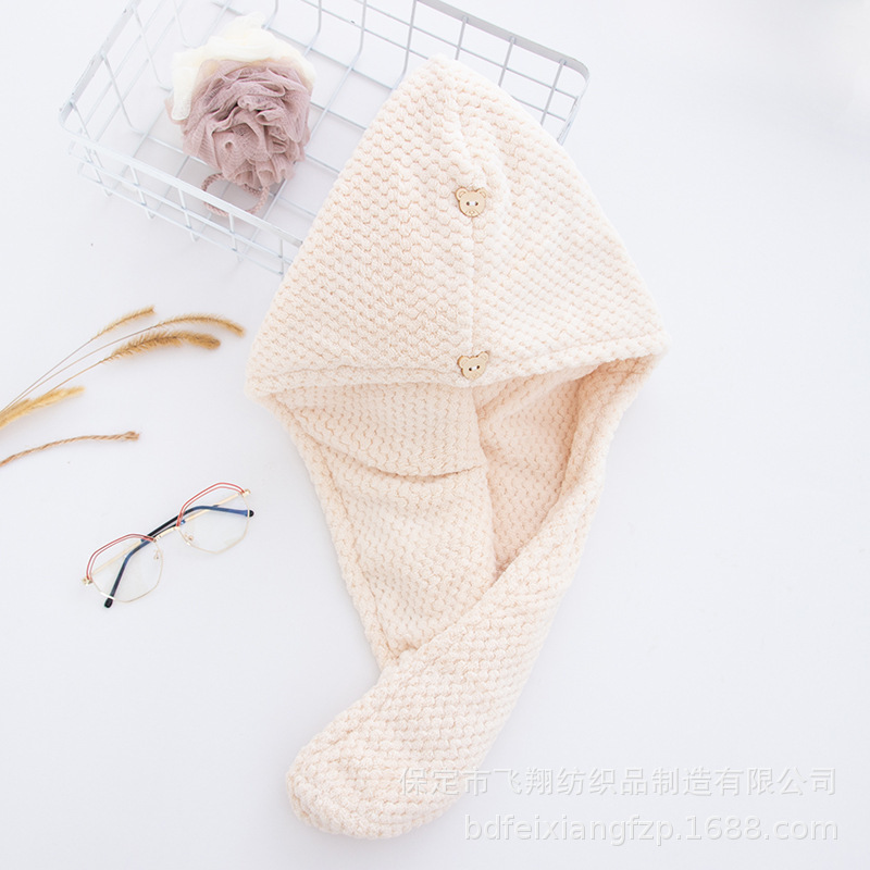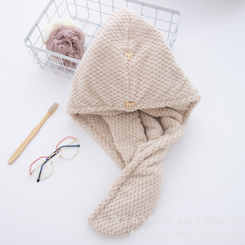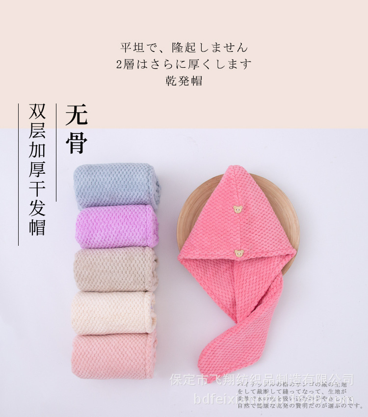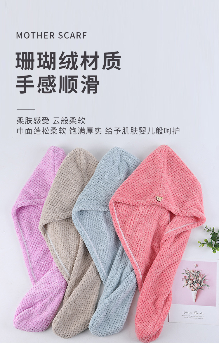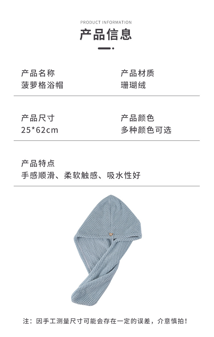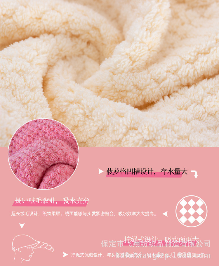 욕실용 모자 이중층 산호 벨벳 파인애플 패턴 흡수성 두꺼운 건조 모자 머리 감기용 헤어캡 160g 헤어케어 머리 닦기용스토어 가기