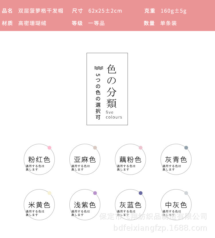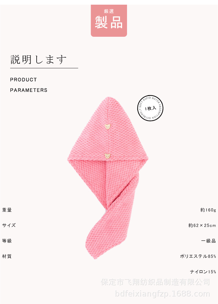 • 더블 레이어 두꺼운 드라이 헤어 캡 연근 핑크
