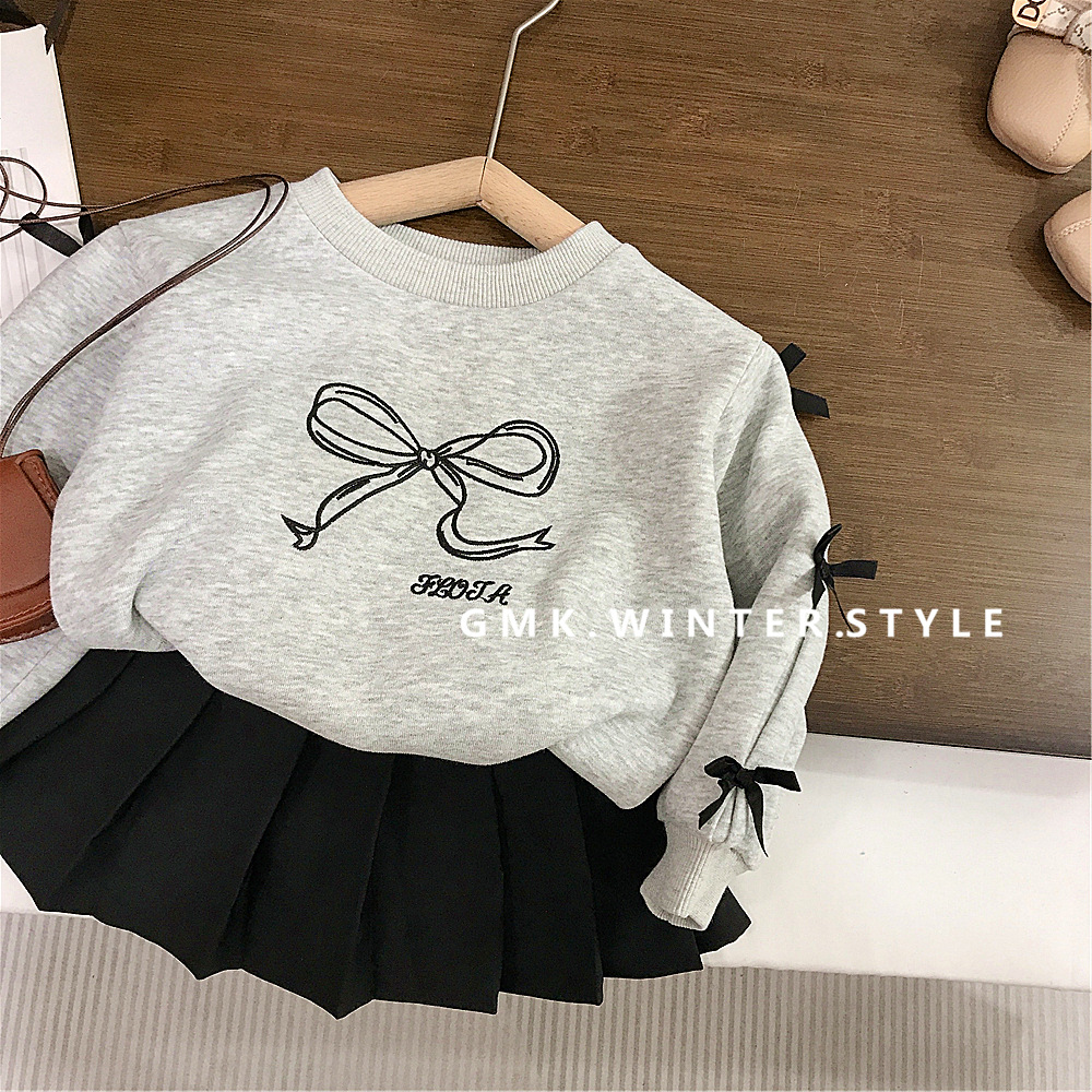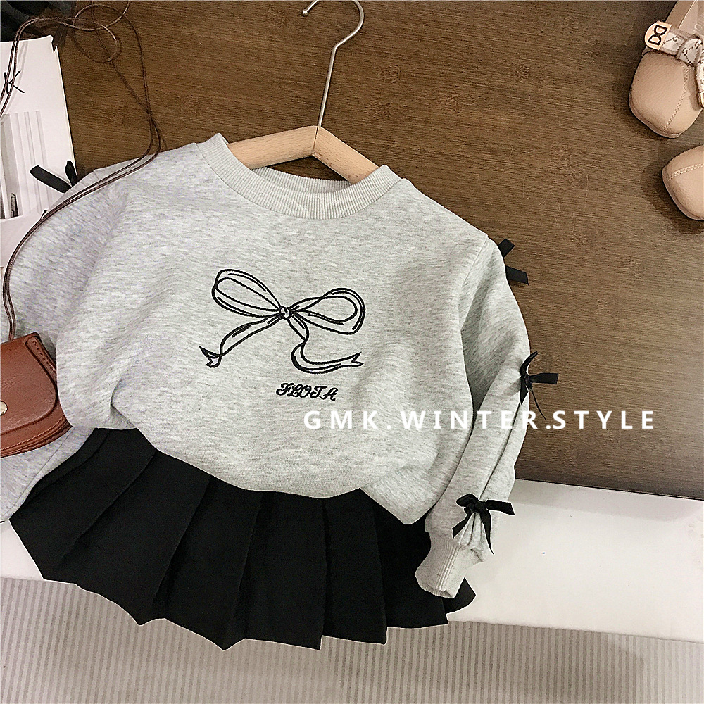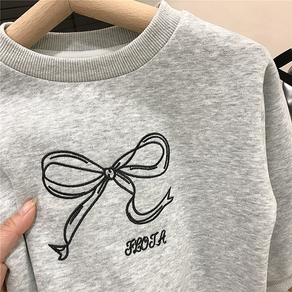 소녀 짧은 스웨트 셔츠 봄과 가을 새로운 어린이 회색 탑 소녀 큰 어린이 봄 의류 서양식 유행 의류스토어 가기