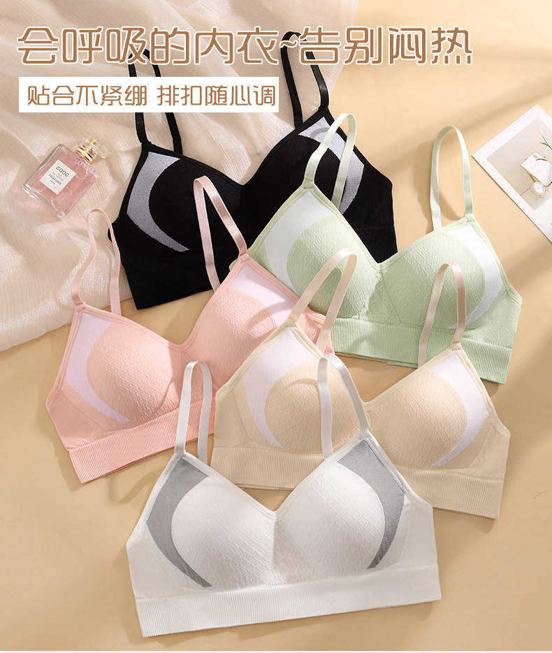 봄 새로운 대비 컬러 슬링 걸스 속옷 스틸 링 고정 컵 통기성 작은 브라 라이트 스포츠 백 버클 랩스토어 가기