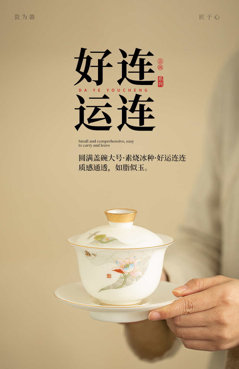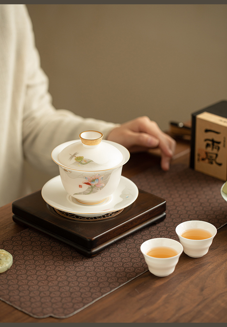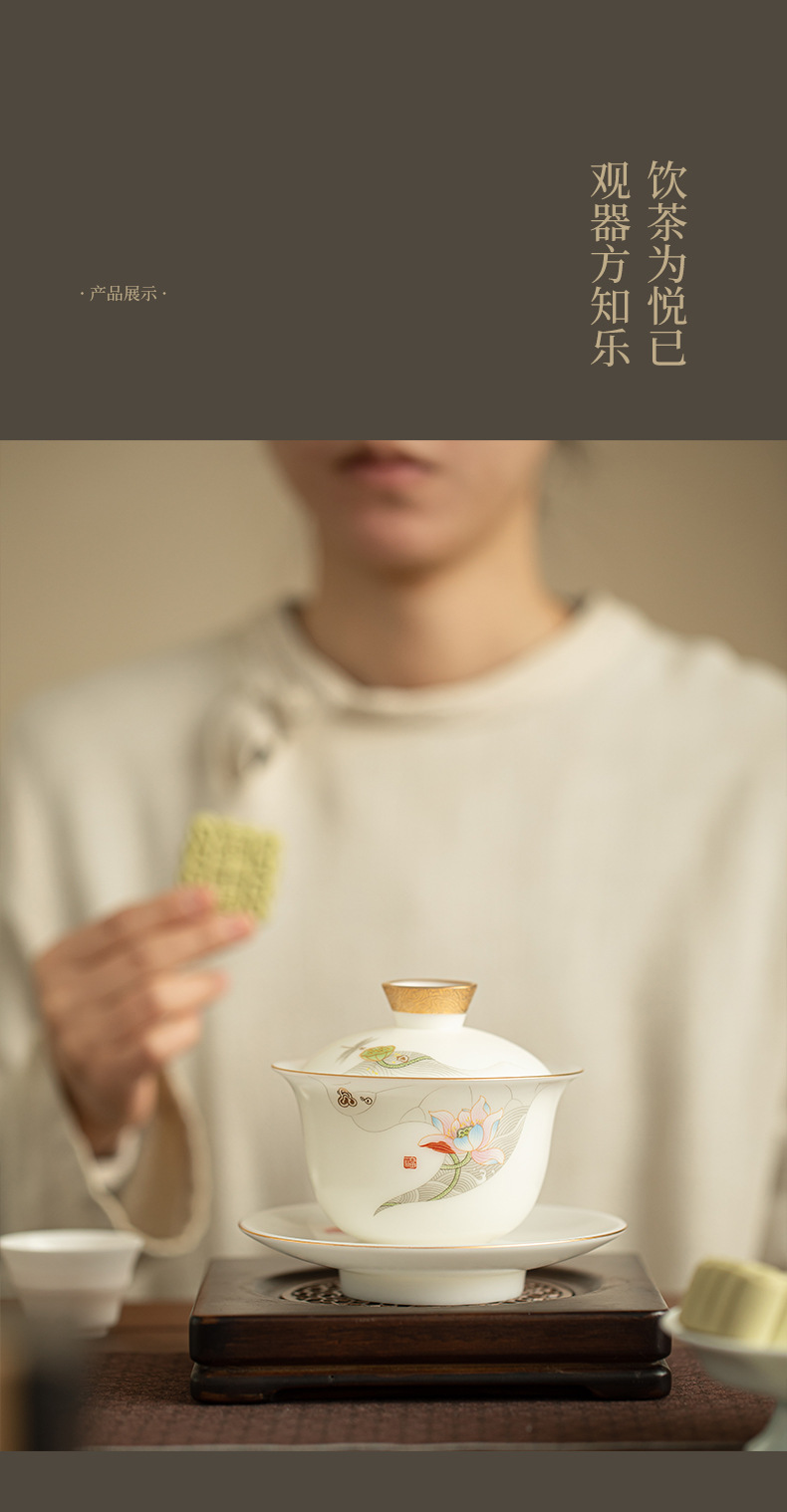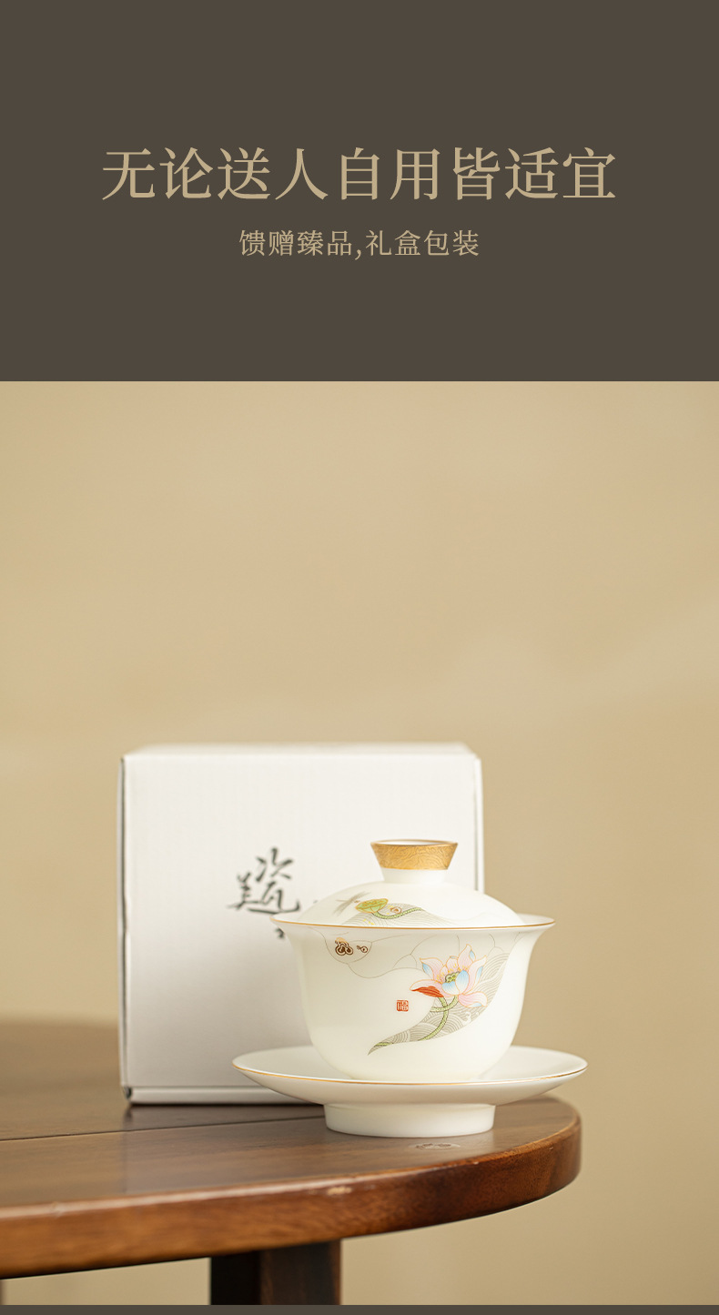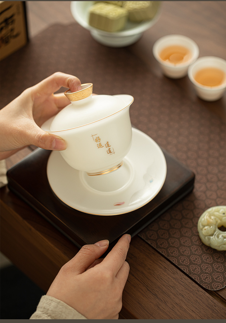 일반 우아한 아이스 시드 Sugai 제이드 도자기 Sancai 커버 그릇 세라믹 티 세트 티 볼 푹신한 티 볼 홈 커버 그릇