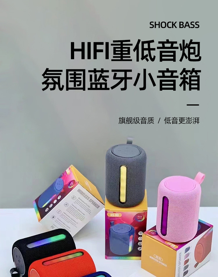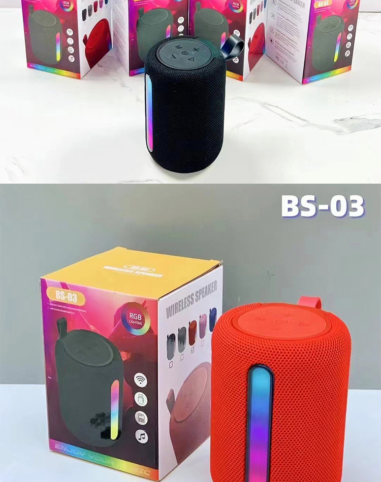 대외 무역 새로운 BS03 라운드 패브릭 무선 블루투스 스피커 휴대용 RGB 플러그 TF 카드 작은 강철 총 작은 스테레오스토어 가기