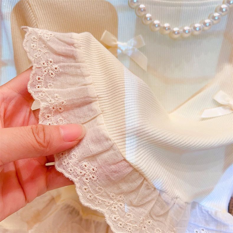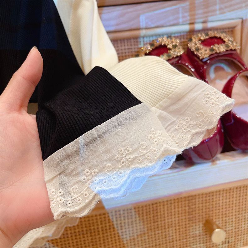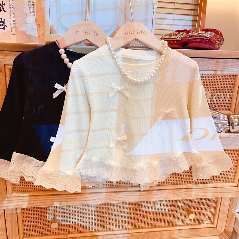 봄과 가을 여성 티셔츠 아기 서양식 어린이 성격 유행 한국 달콤한 활 레이스 베이스 셔츠