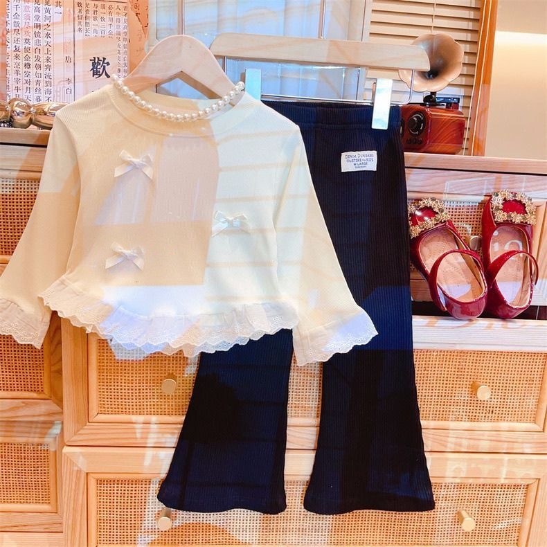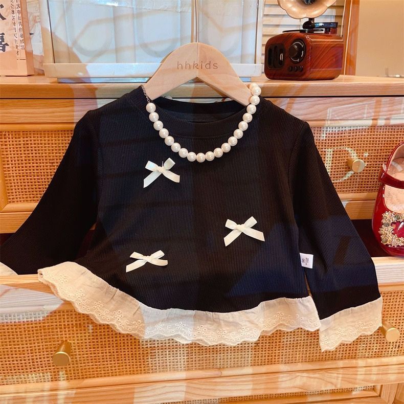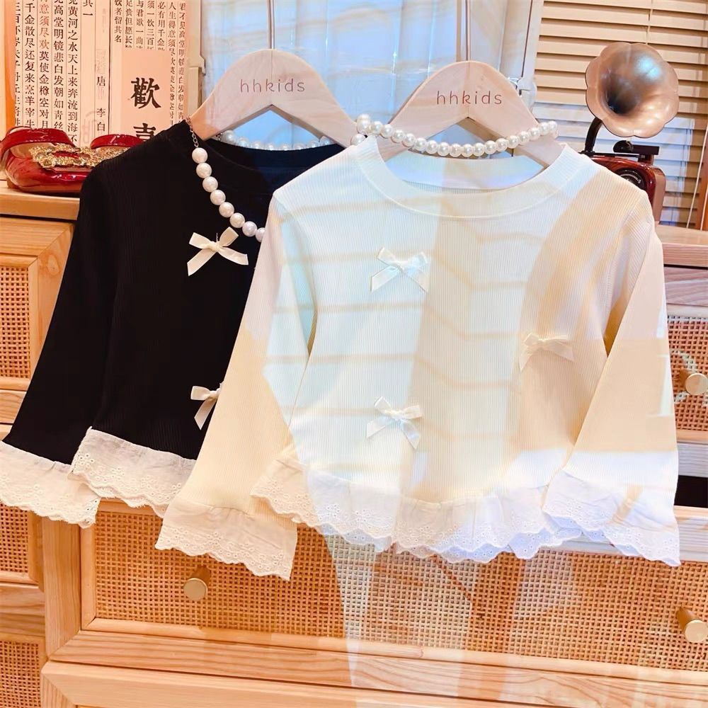 봄과 가을 여성 티셔츠 아기 서양식 어린이 성격 유행 한국 달콤한 활 레이스 베이스 셔츠스토어 가기