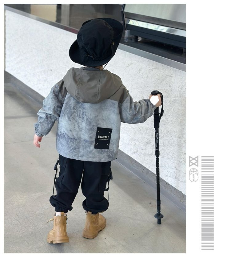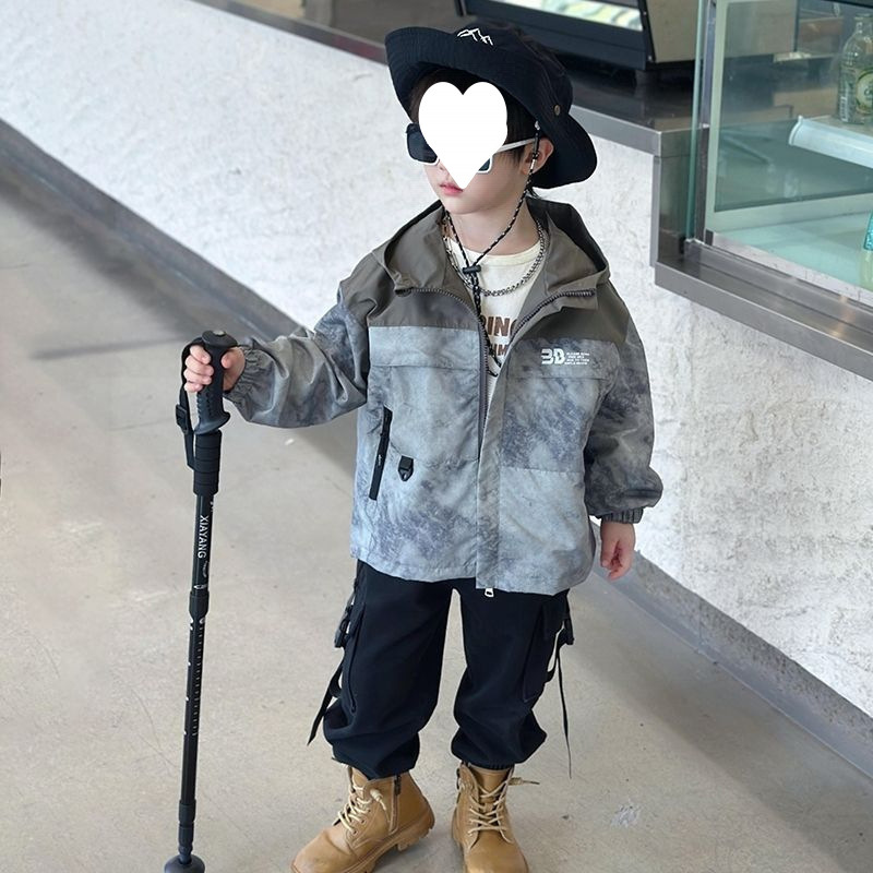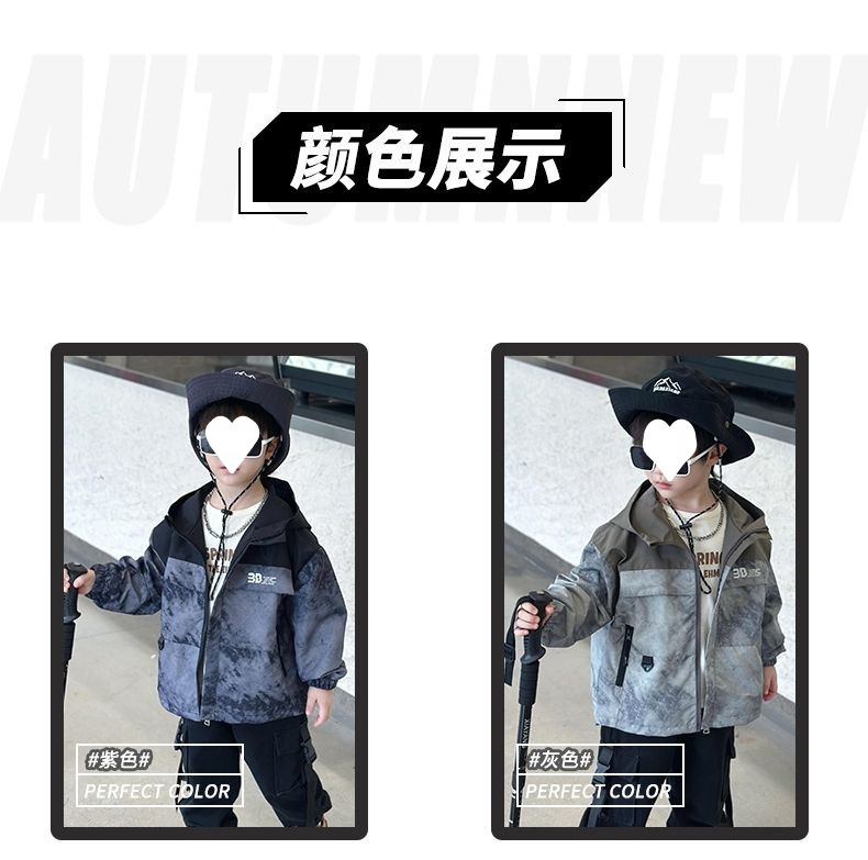 소년 러쉬 자켓 가을 2025 새로운 도착 유행 어린이 바람막이 잘 생긴 소년 아기의 가을 후드 탑