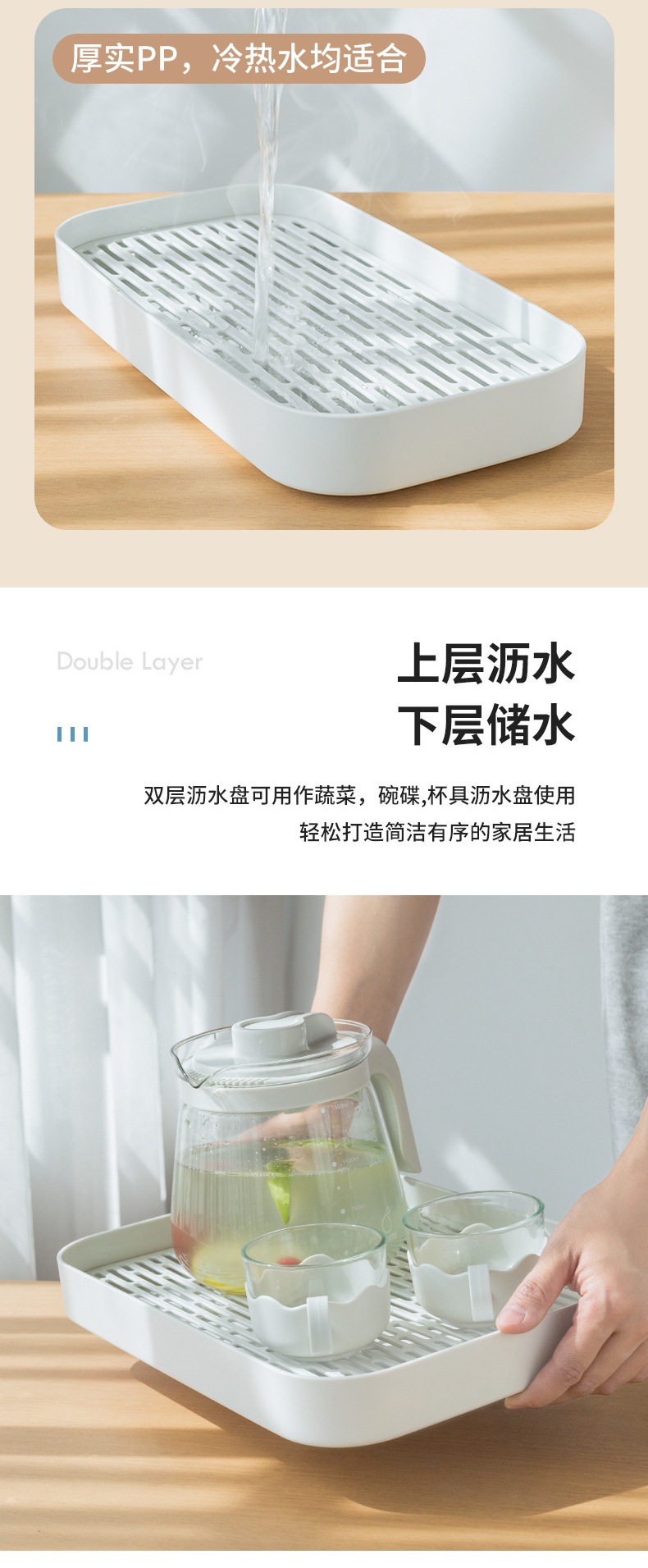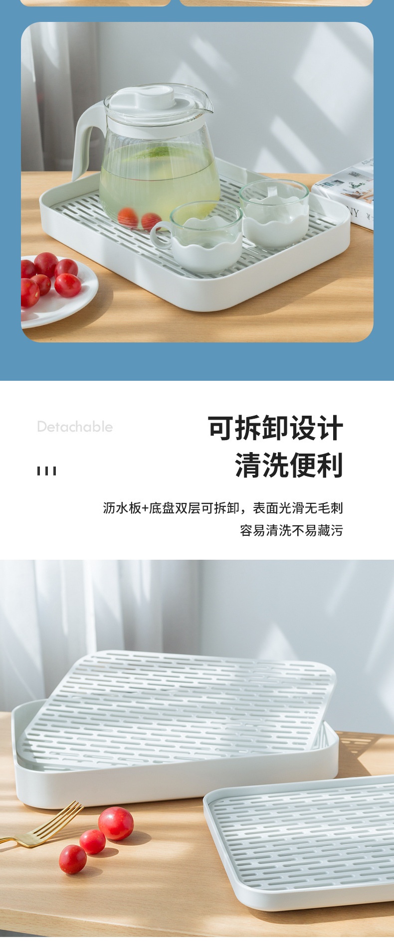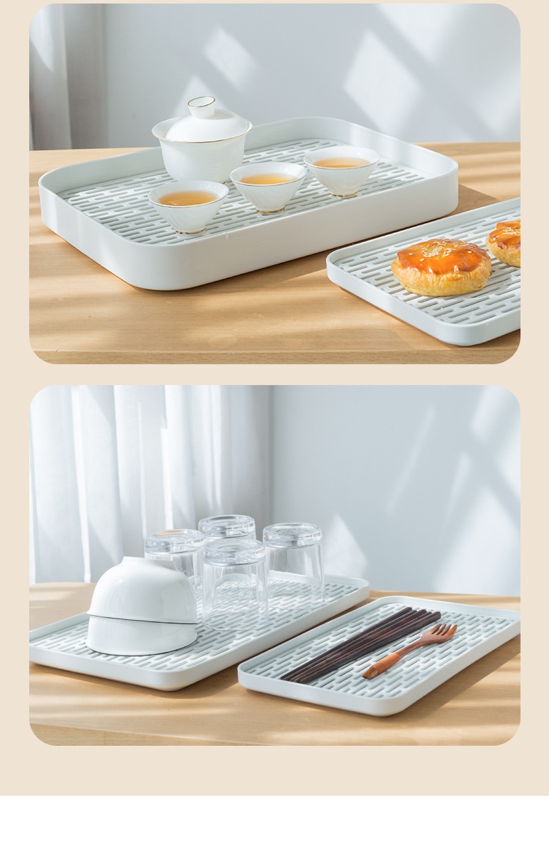 보온병 매트 트레이 배수 트레이 직사각형 더블 레이어 티컵 배수 트레이 플라스틱 티 트레이 간단한 과일 두꺼운 깊은