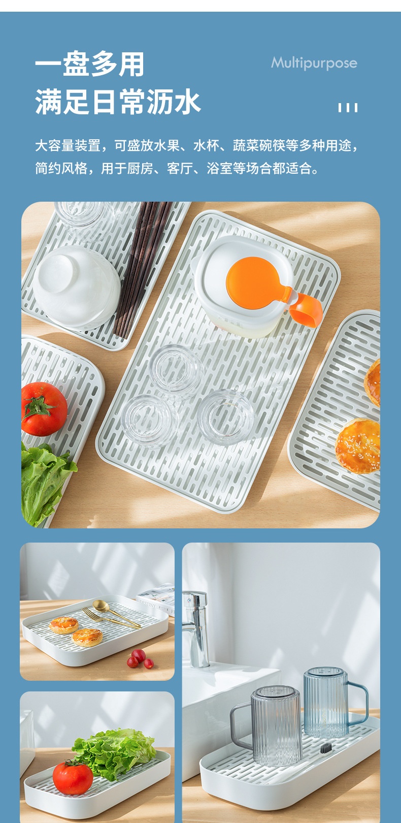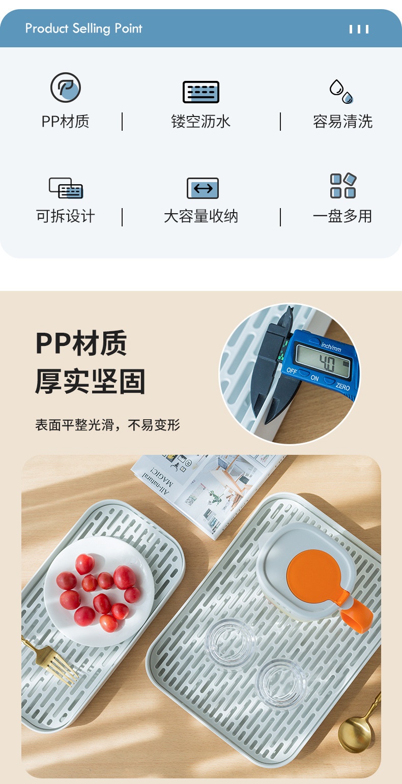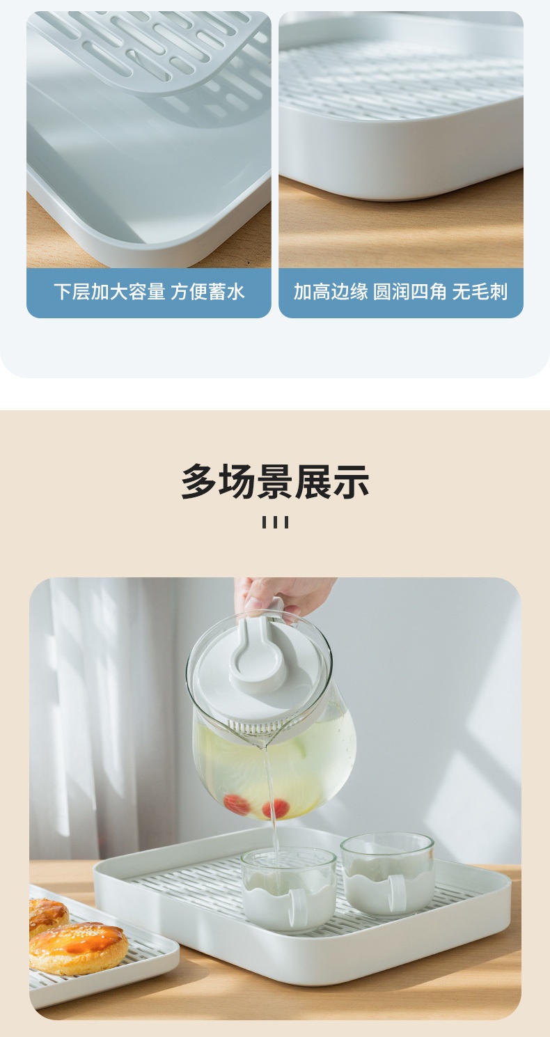 보온병 매트 트레이 배수 트레이 직사각형 더블 레이어 티컵 배수 트레이 플라스틱 티 트레이 간단한 과일 두꺼운 깊은