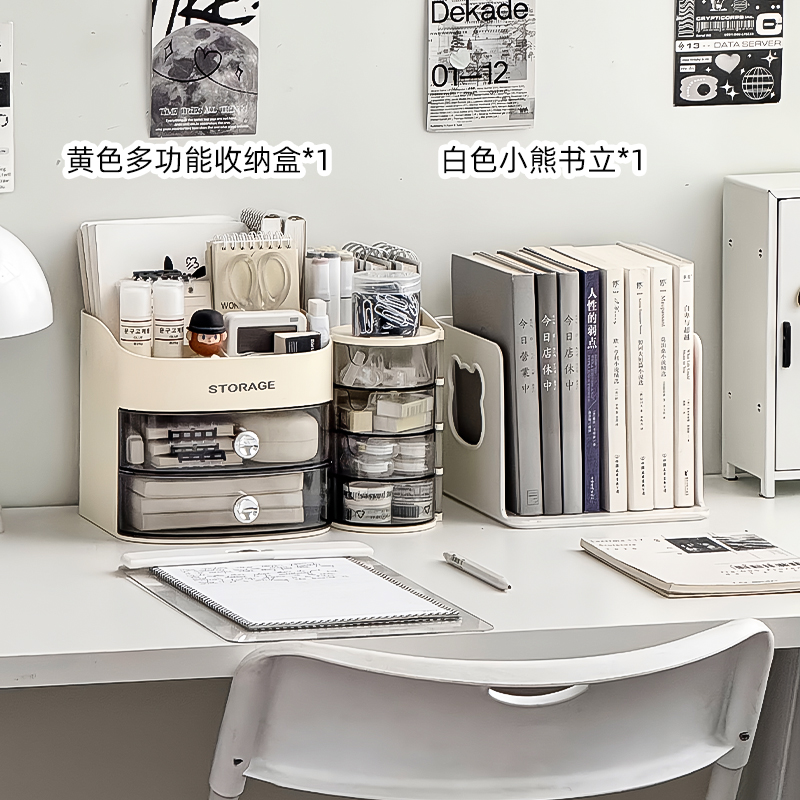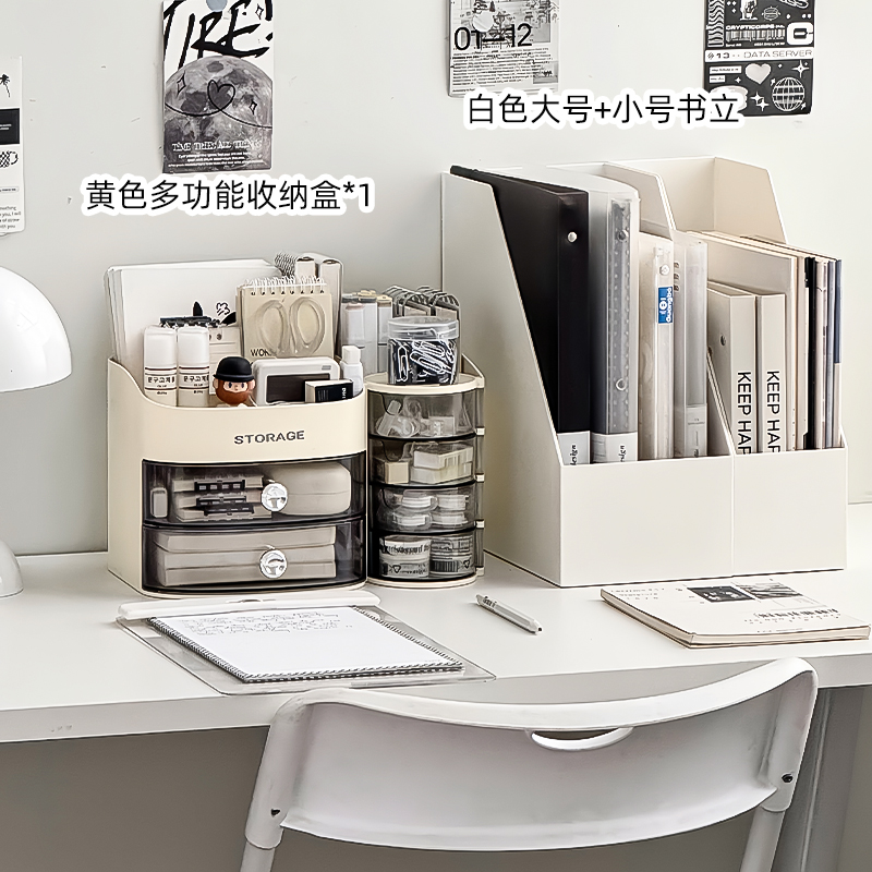 • 노란색 다기능 문구 보관함 + 크고 작은 북엔드