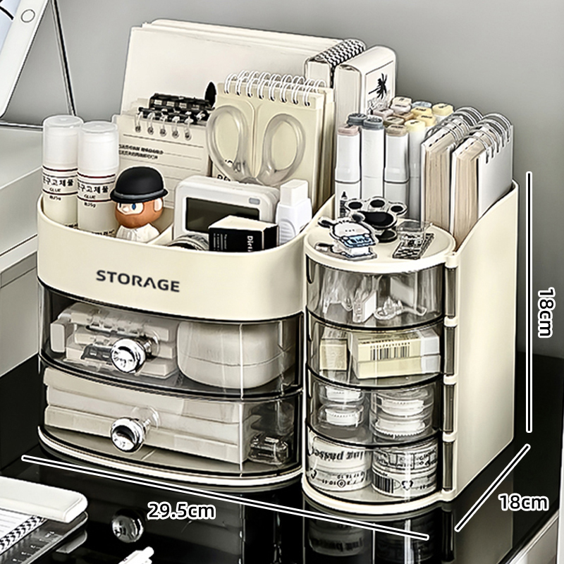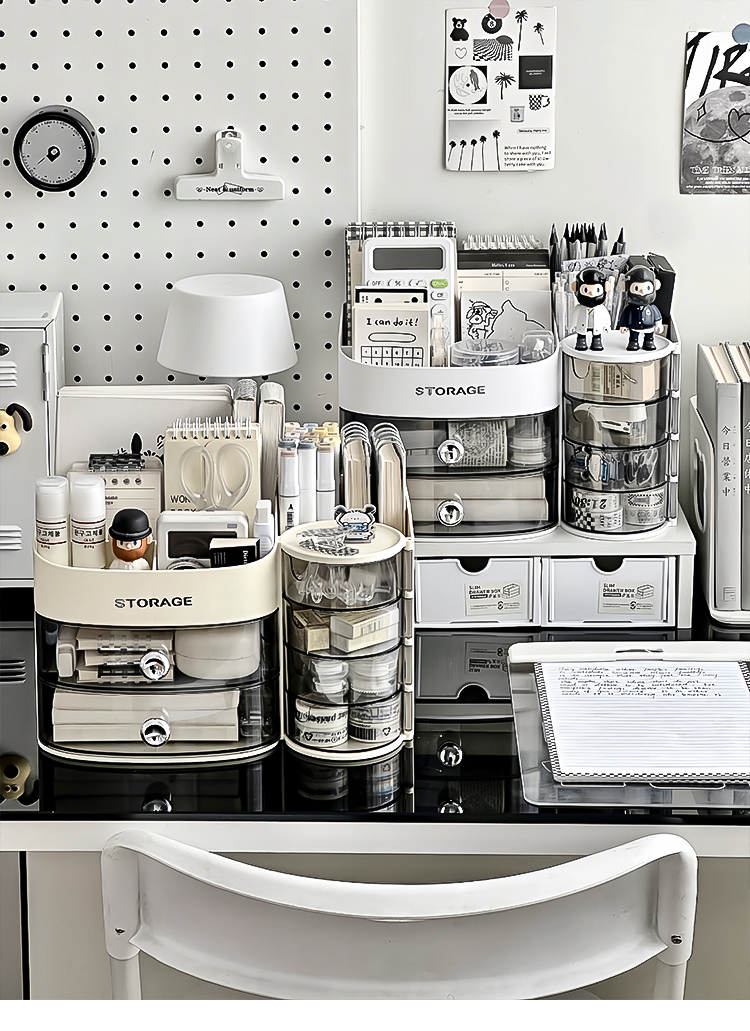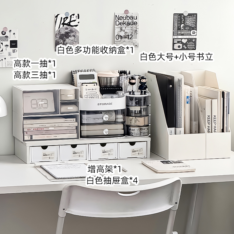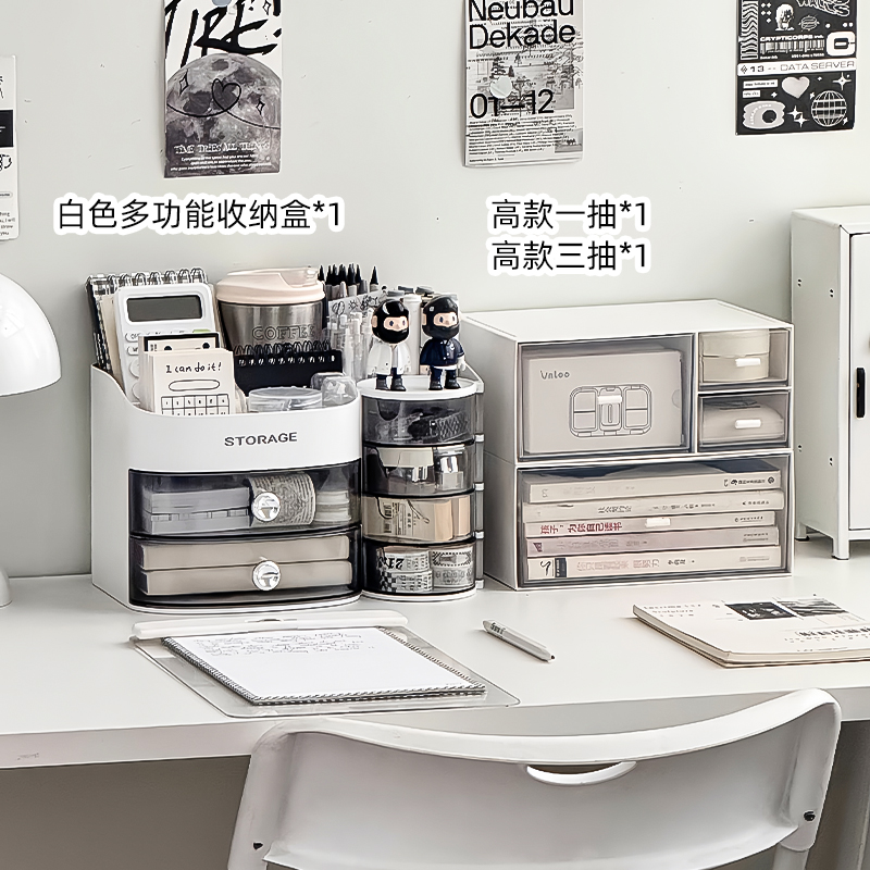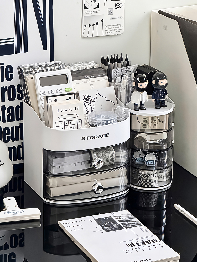 • 흰색 다기능 문구 보관함 + 서랍 1개 및 서랍 3개