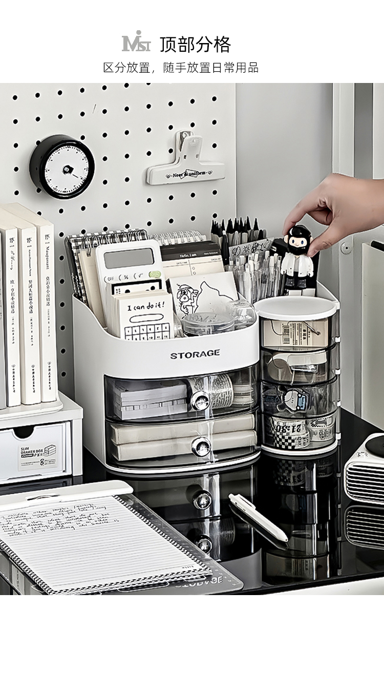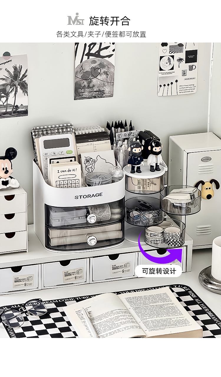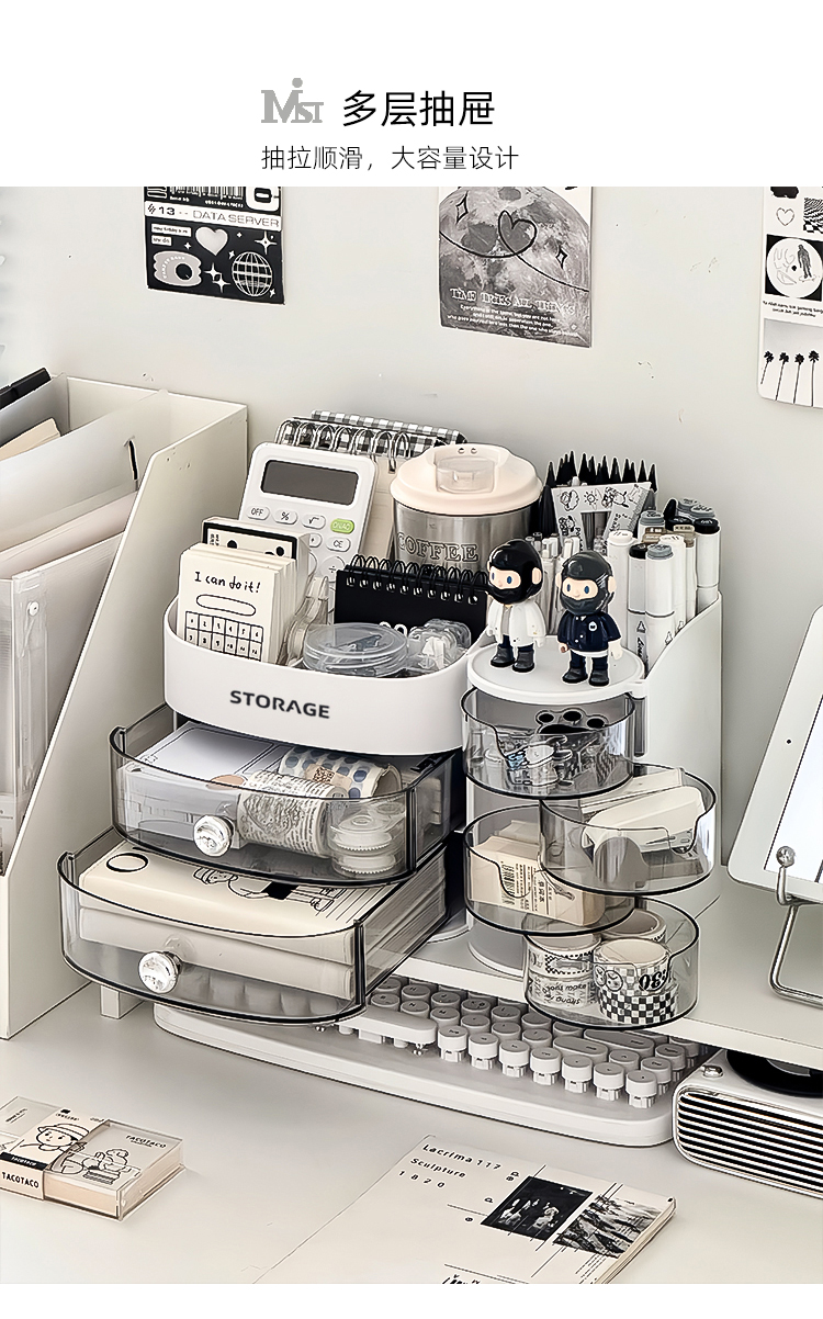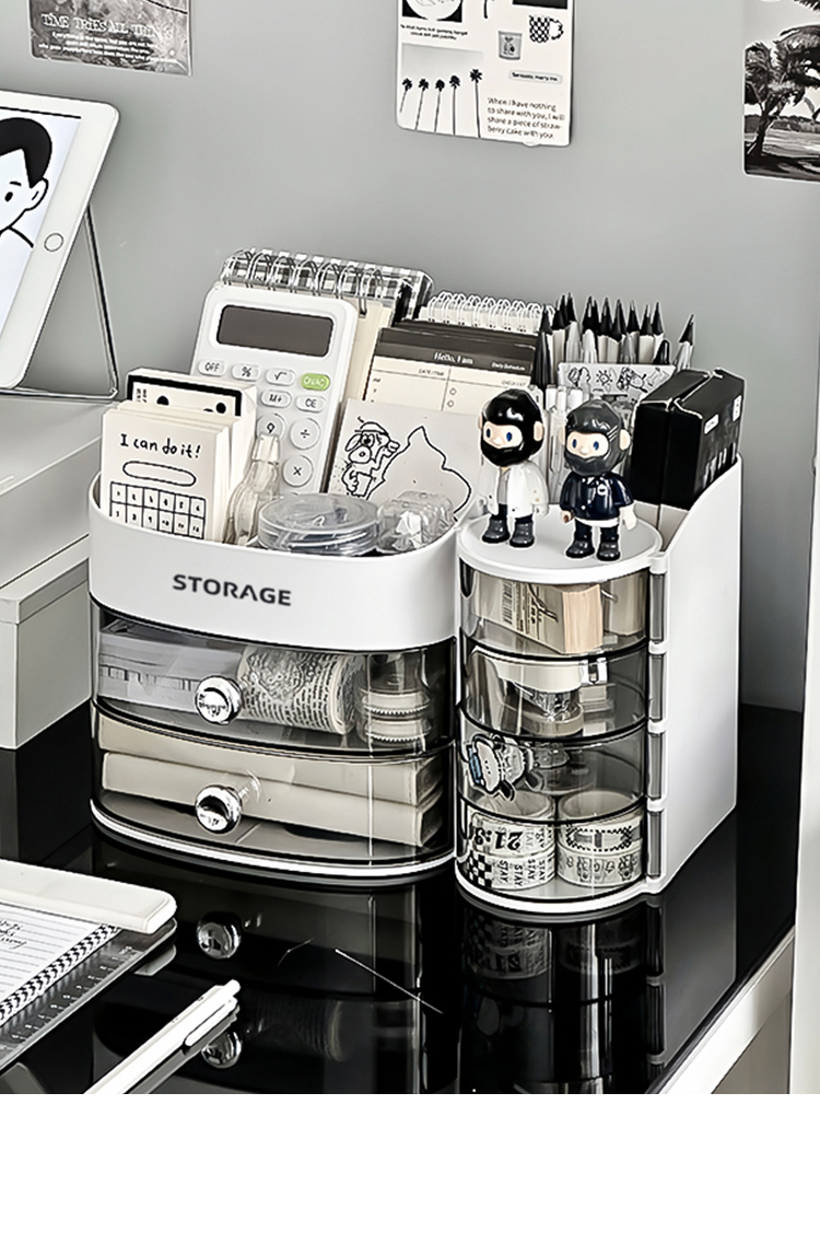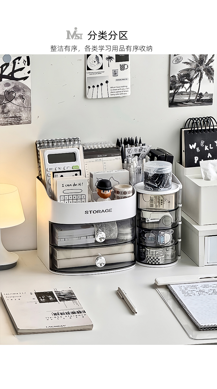 다기능 데스크탑 오피스 펜 홀더 대용량 저장 상자 서랍 유형 역 저장 랙 학생 책상 문구스토어 가기