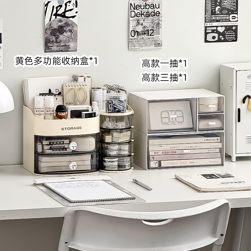 • 노란색 다기능 문구 보관함 + 서랍 1개 및 서랍 3개