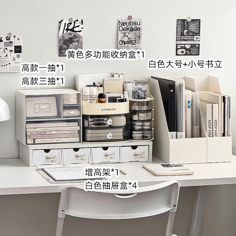 • 책상조합B 5종 10개 [다기능수납함+서랍함+높은선반+북엔드+수납함]