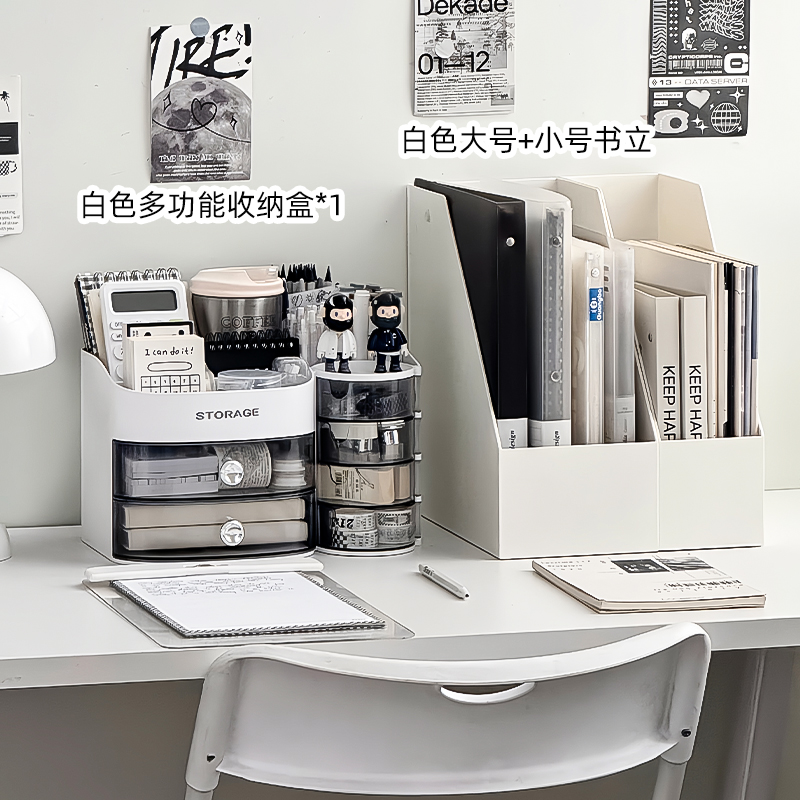 • 흰색 다기능 문구 보관함 + 크고 작은 북엔드