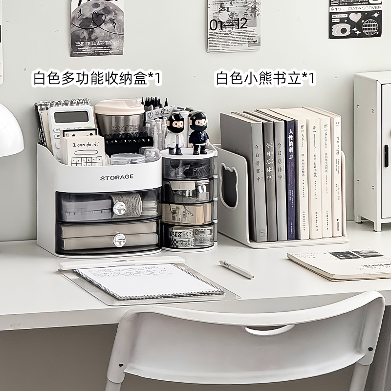 • 흰색 다기능 문구 보관함 + 곰 북엔드