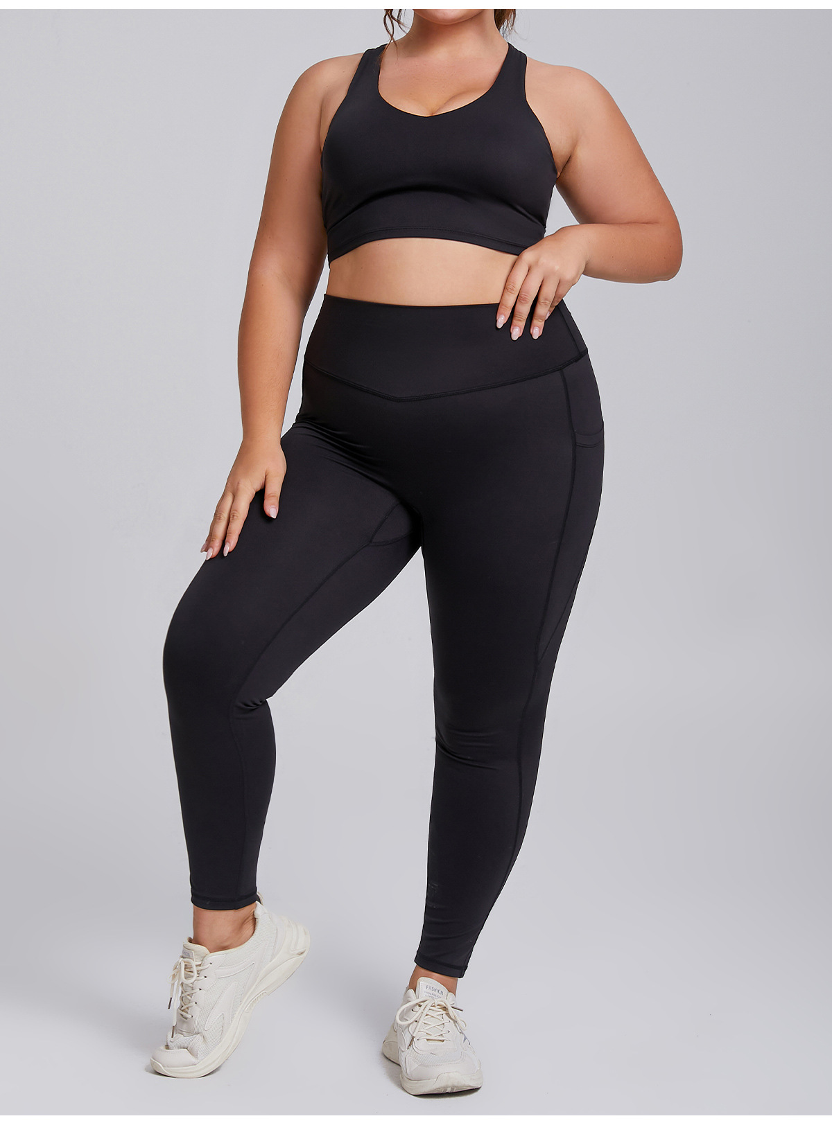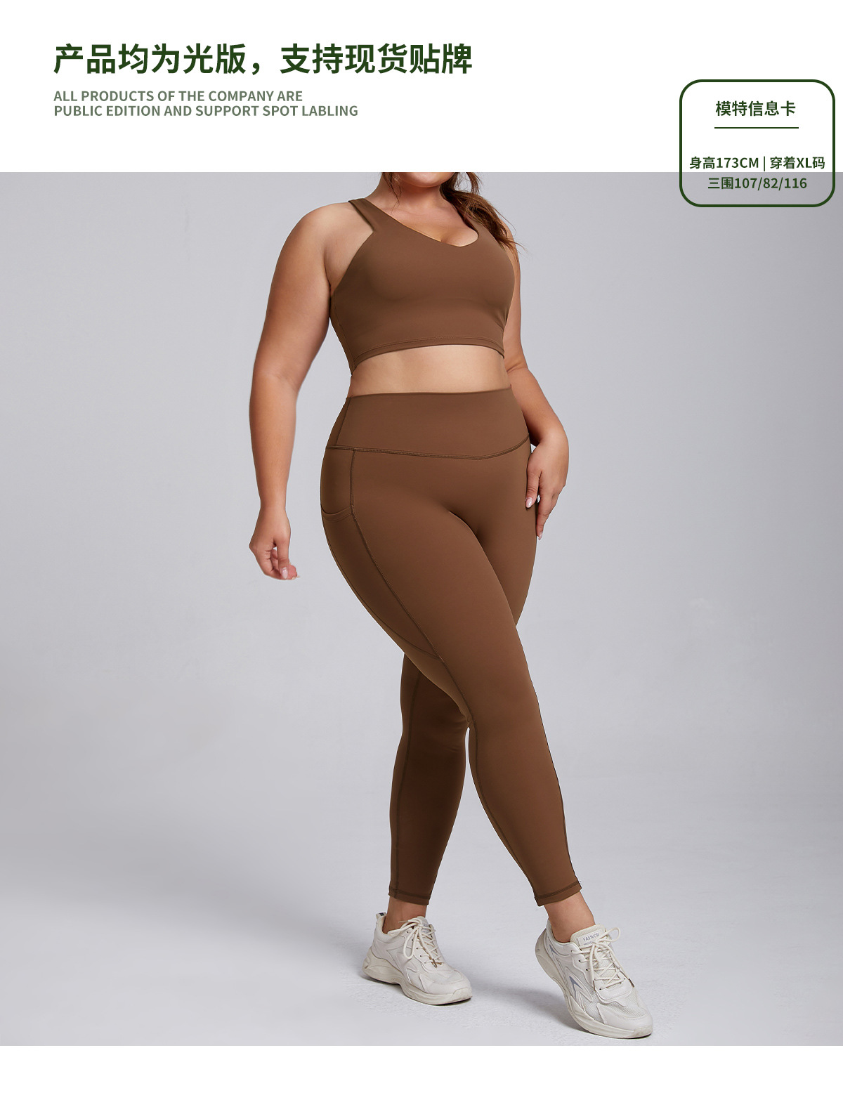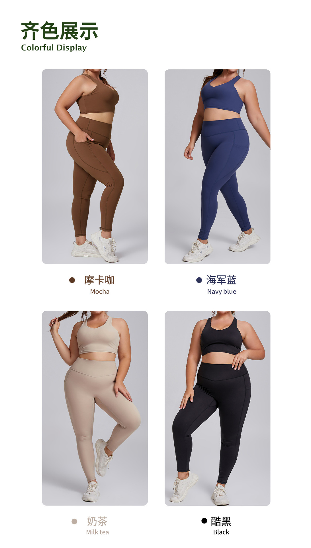 유럽과 미국의 플러스 사이즈 요가 세트 세트 높은 탄성 통기성 피트니스 세트 여성 플러스 사이즈 꽉 포켓 운동복