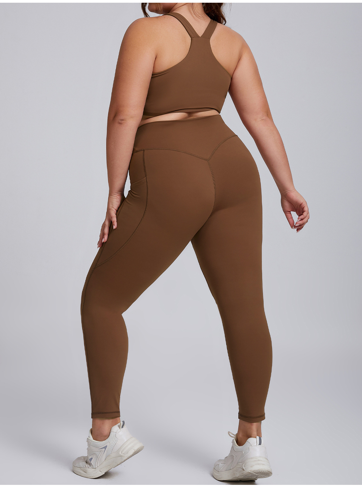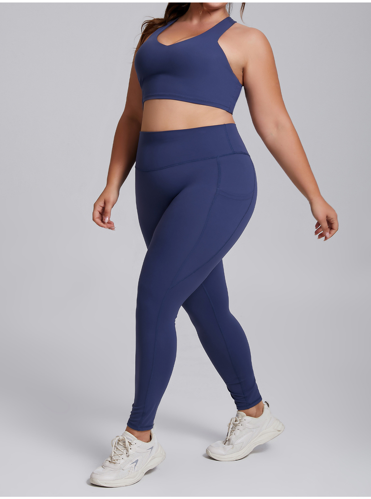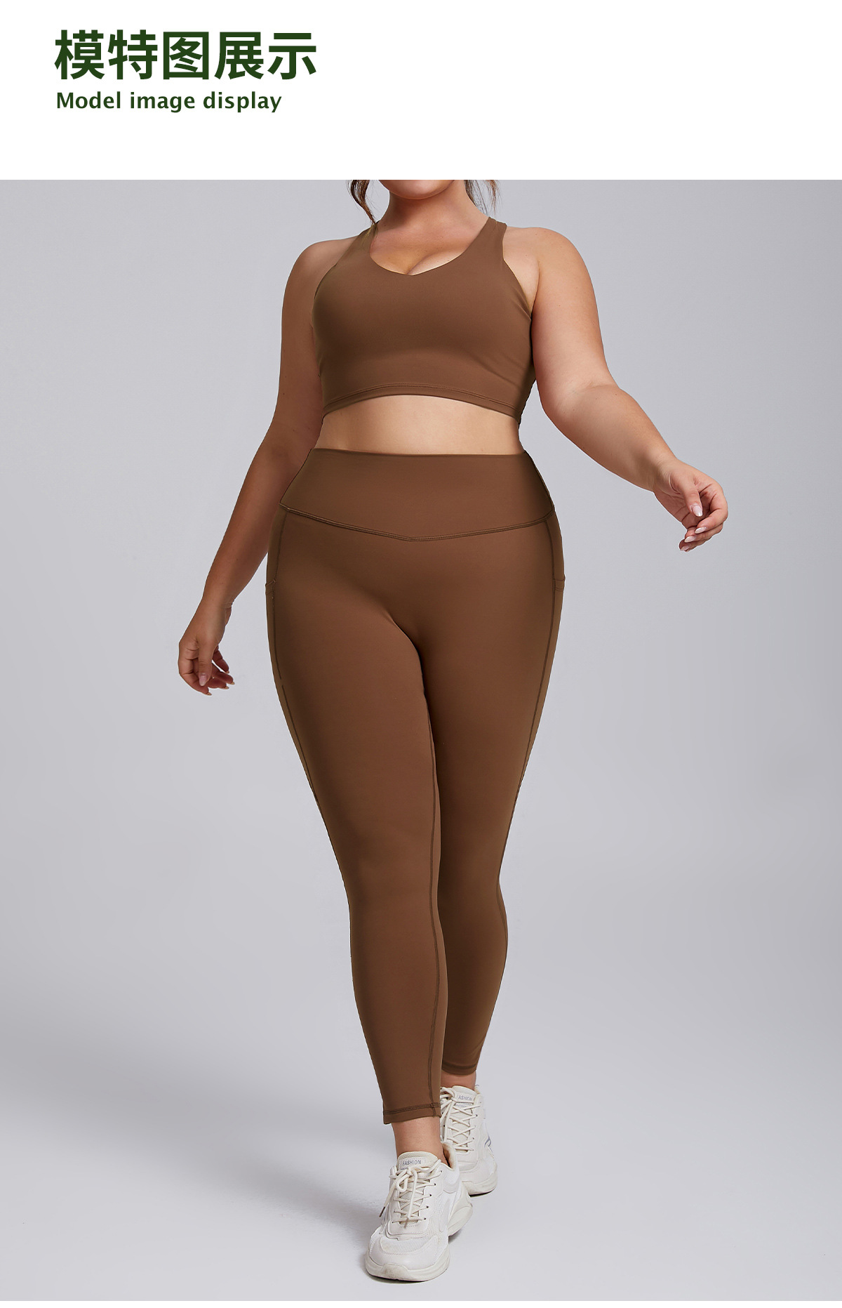 유럽과 미국의 플러스 사이즈 요가 세트 세트 높은 탄성 통기성 피트니스 세트 여성 플러스 사이즈 꽉 포켓 운동복