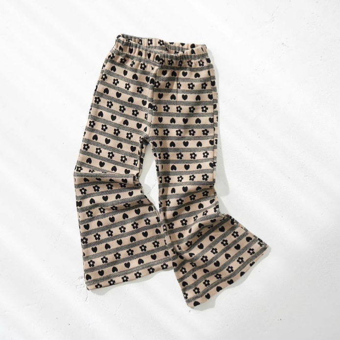 2025Pippi 봄과 여름 새로운 올 매치 편안한 소녀 보물 소녀 슈퍼 소프트 자카드 러브 니트 플래 팬츠 NY스토어 가기
