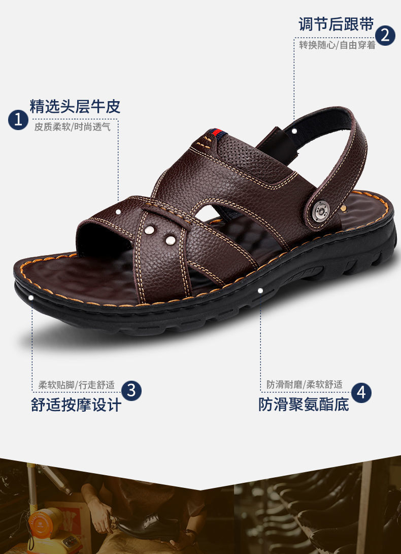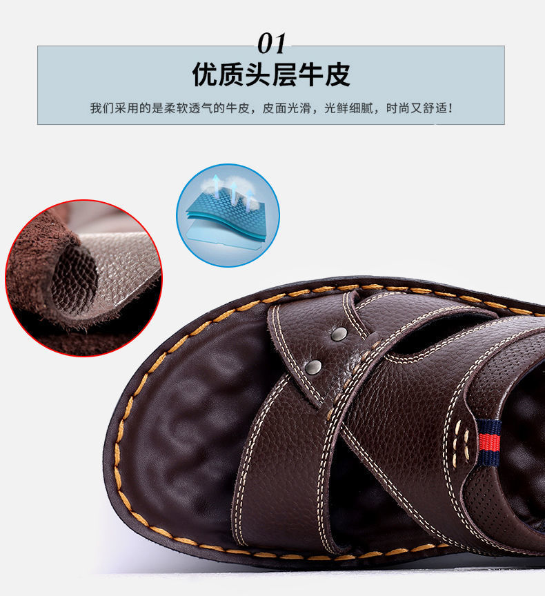 2024 년 여름 새로운 남성용 샌들 정품 가죽 캐주얼 비치 슈즈 남성용 외형 탑 레이어 카우하이드 샌들 및 슬리퍼 남성용 듀얼스토어 가기