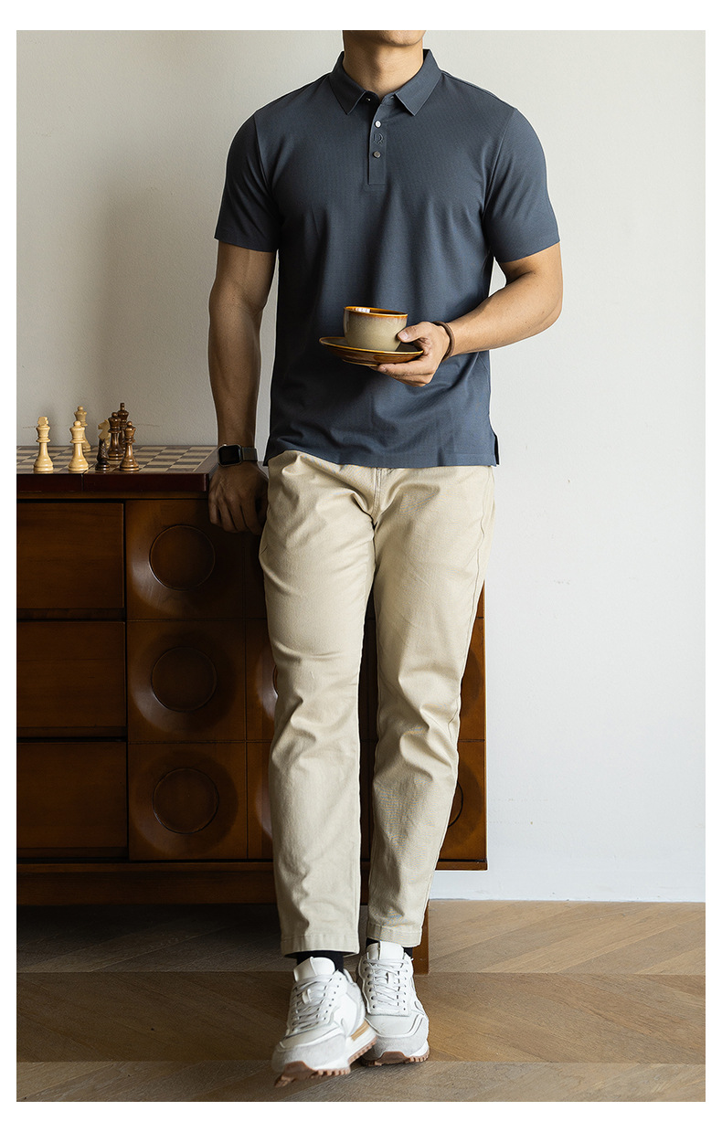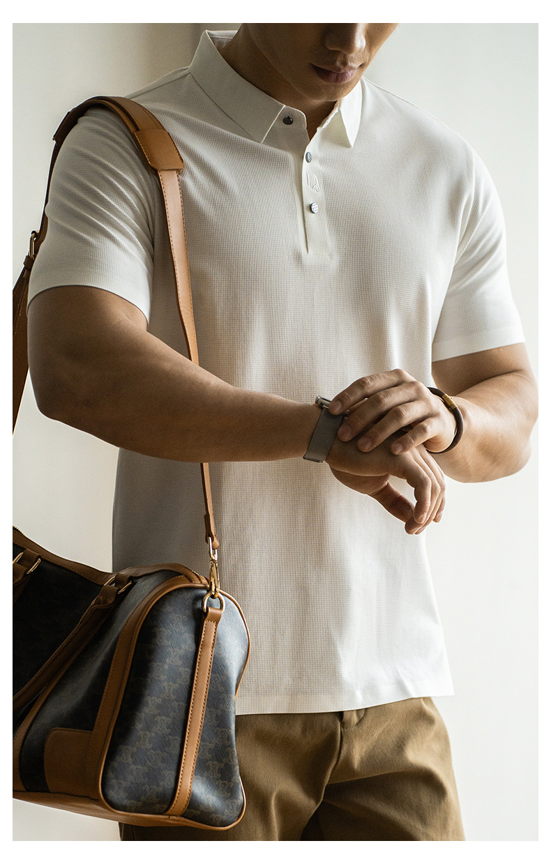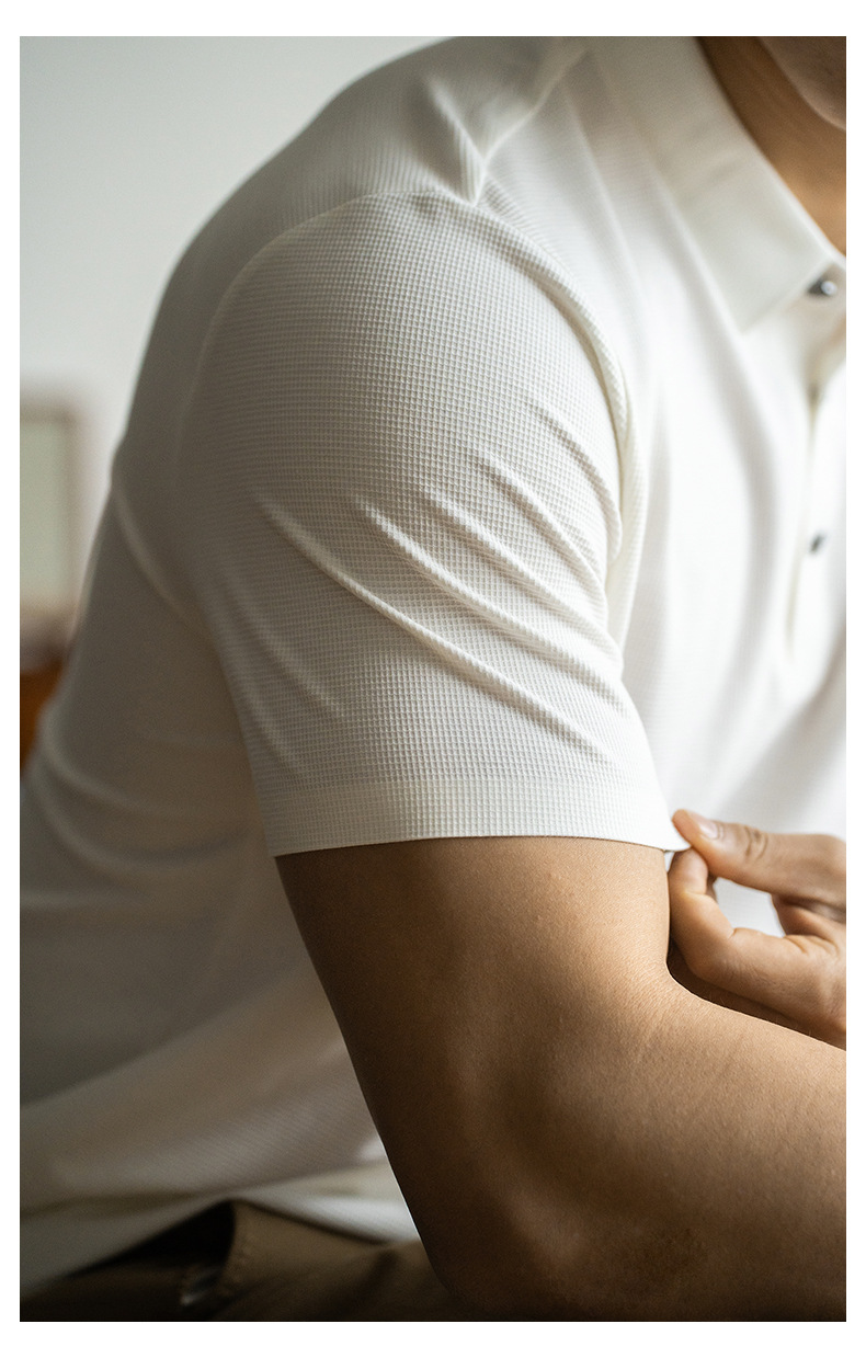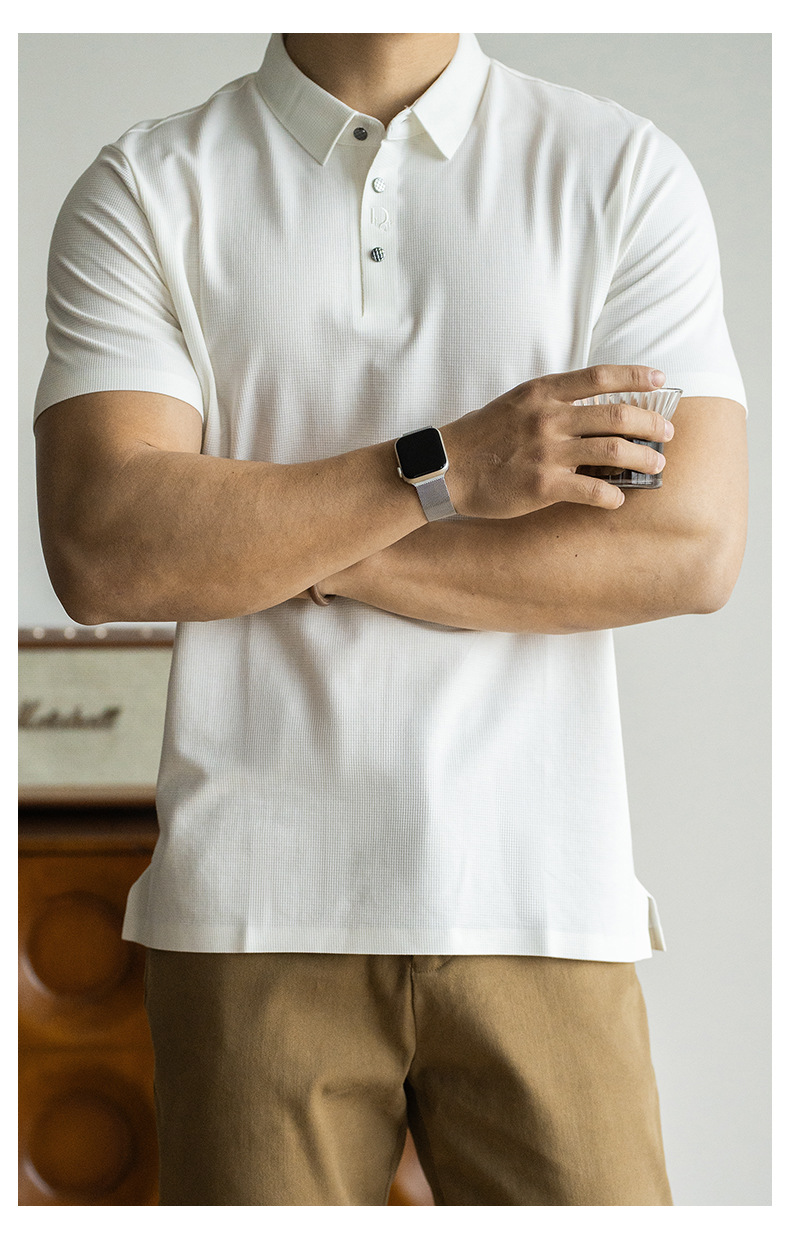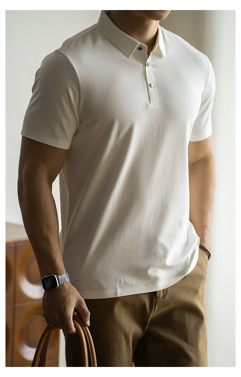 와플리 텍스처 아이스 실크 쿨 폴로 셔츠 남자의 봄과 여름 2025 단색 간단한 비즈니스 캐주얼 짧은 소매