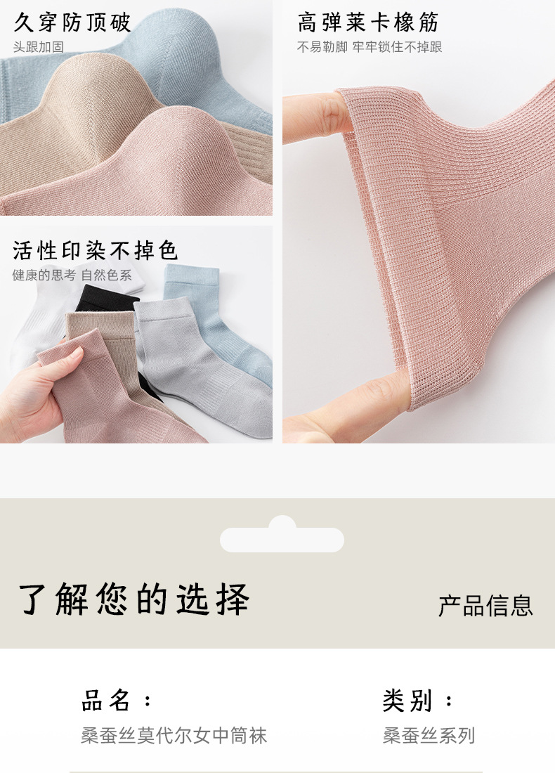 뽕나무 실크 양말 여성의 봄과 여름 항균 방취제 땀 흡수성 메쉬 통기성 미드 튜브 양말 뼈없는 스타킹스토어 가기