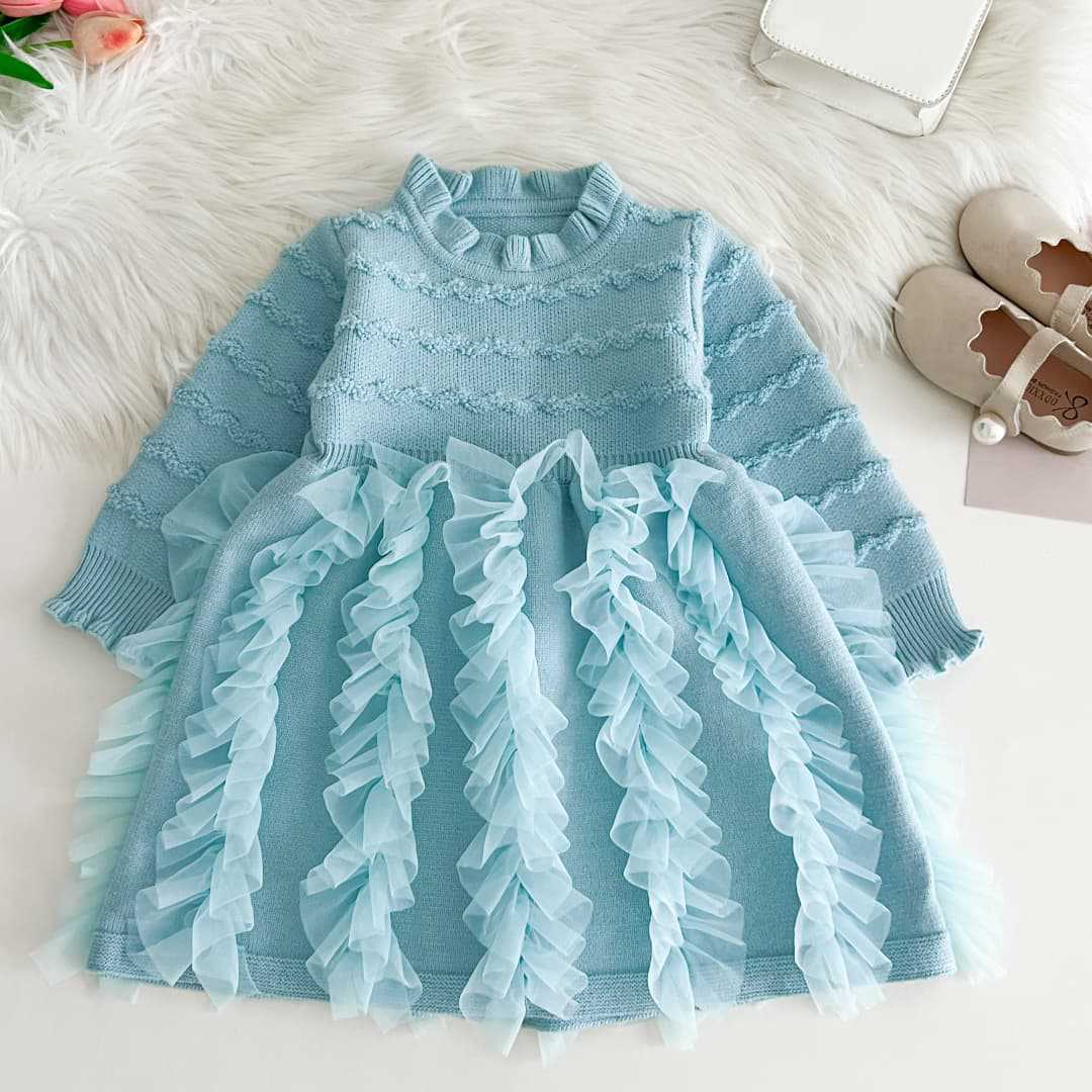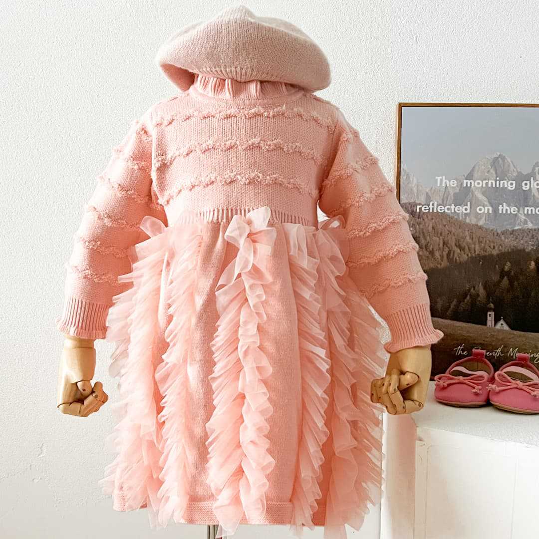 소녀 스웨터 원피스 봄과 가을 새로운 한국 스타일 서양식 솔리드 컬러 니트 긴 소매 공주 원피스