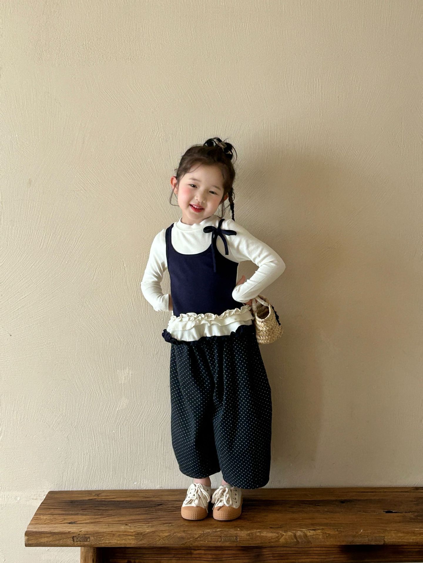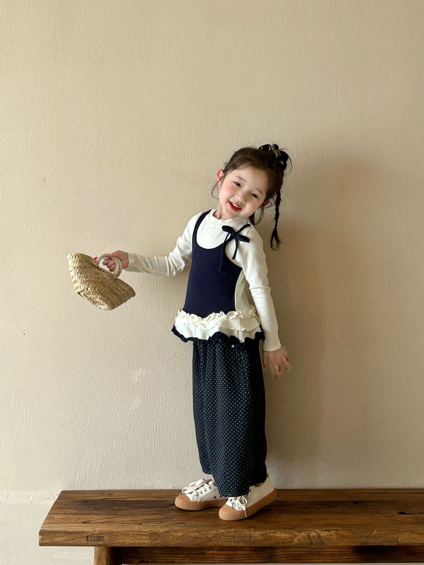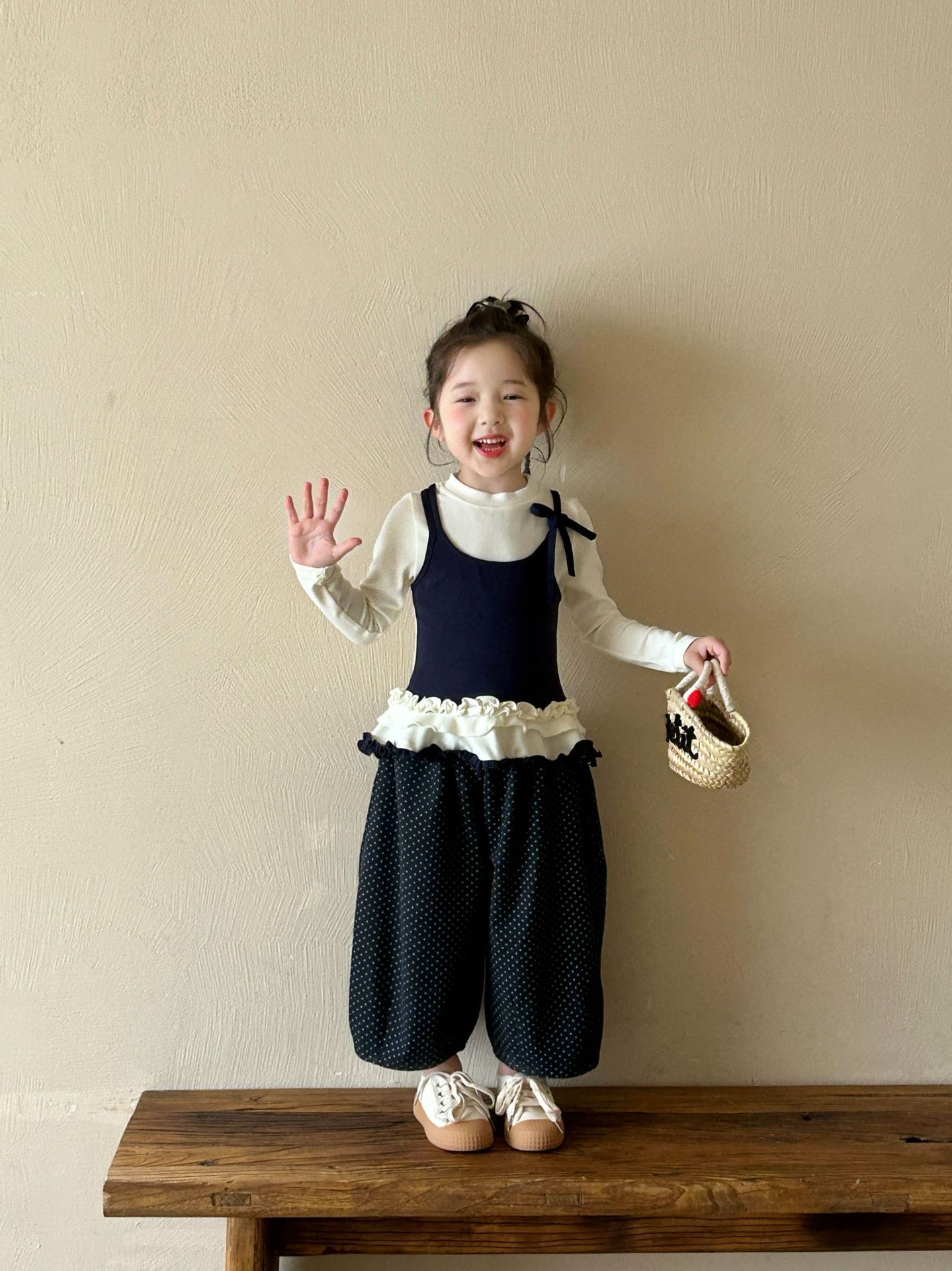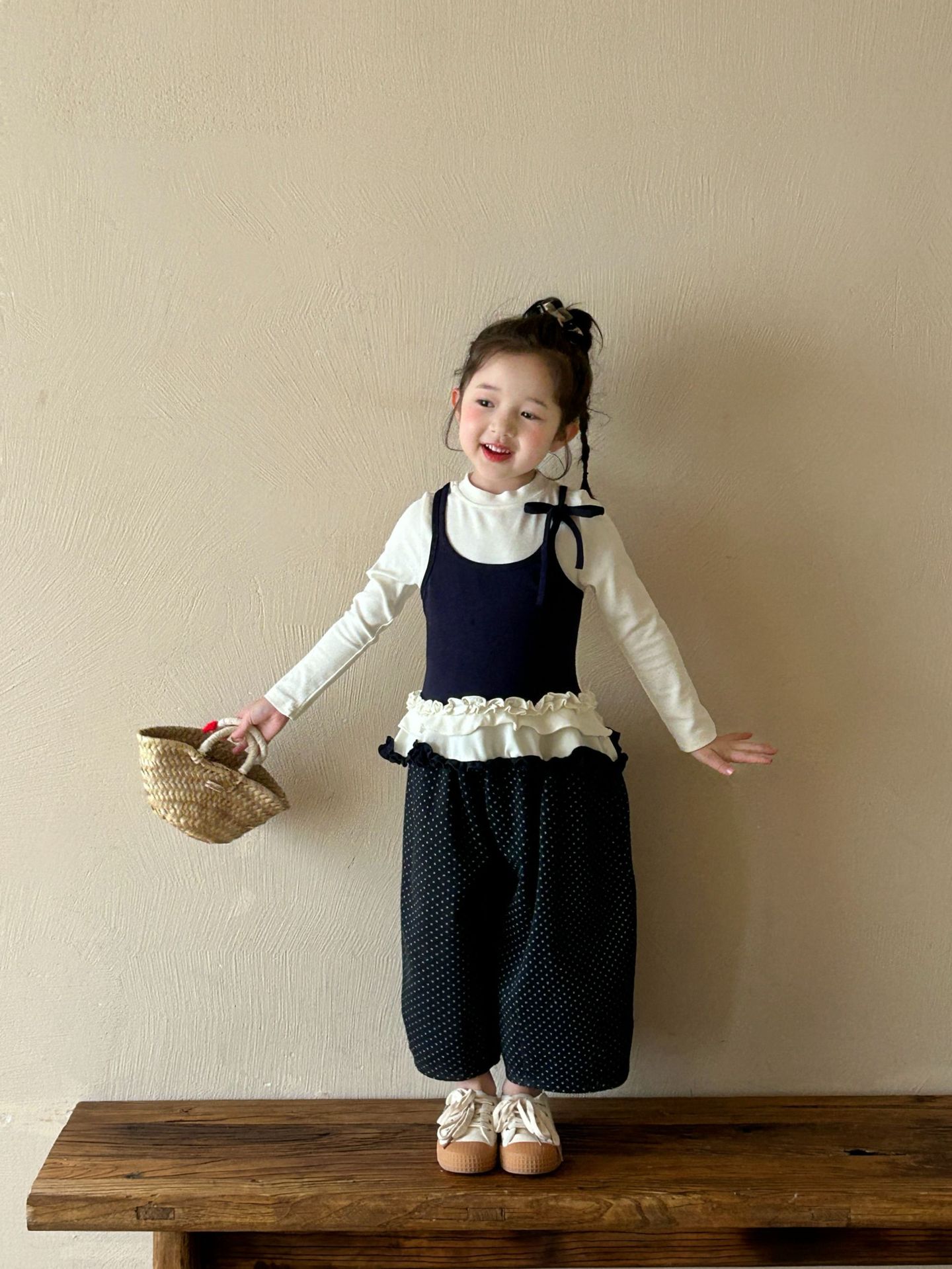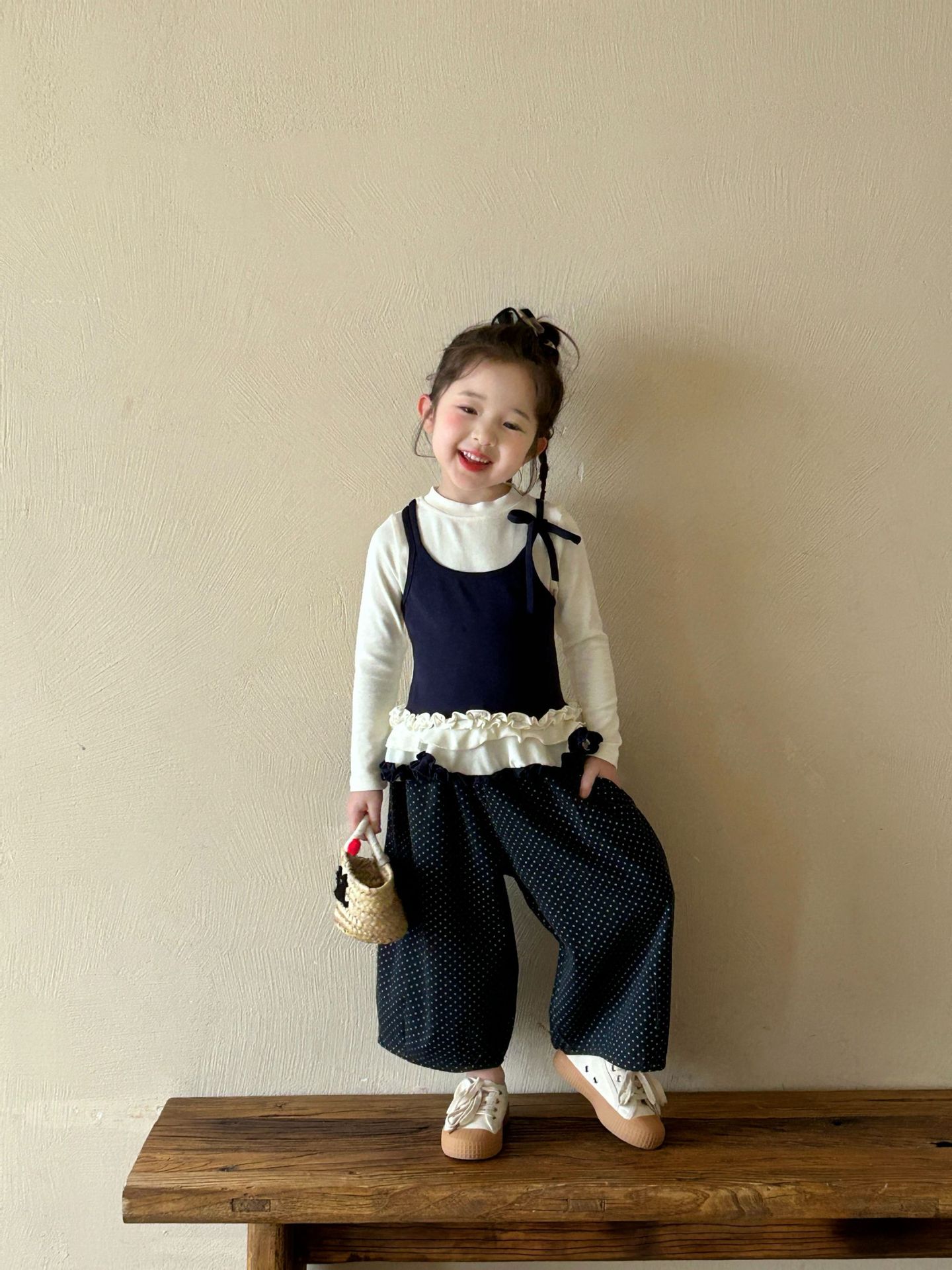 2025 가을 새로운 아동 의류 한국 스타일 아동 의류 소녀 발레 스타일 레이스 서스펜더 가짜 투피스 티셔츠 바닥 셔츠스토어 가기