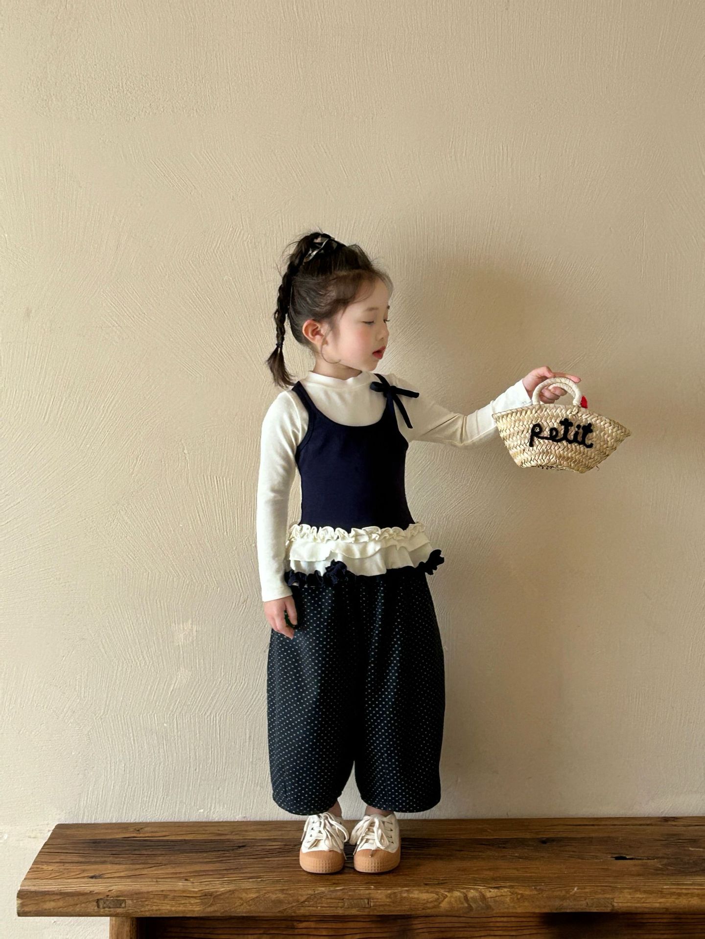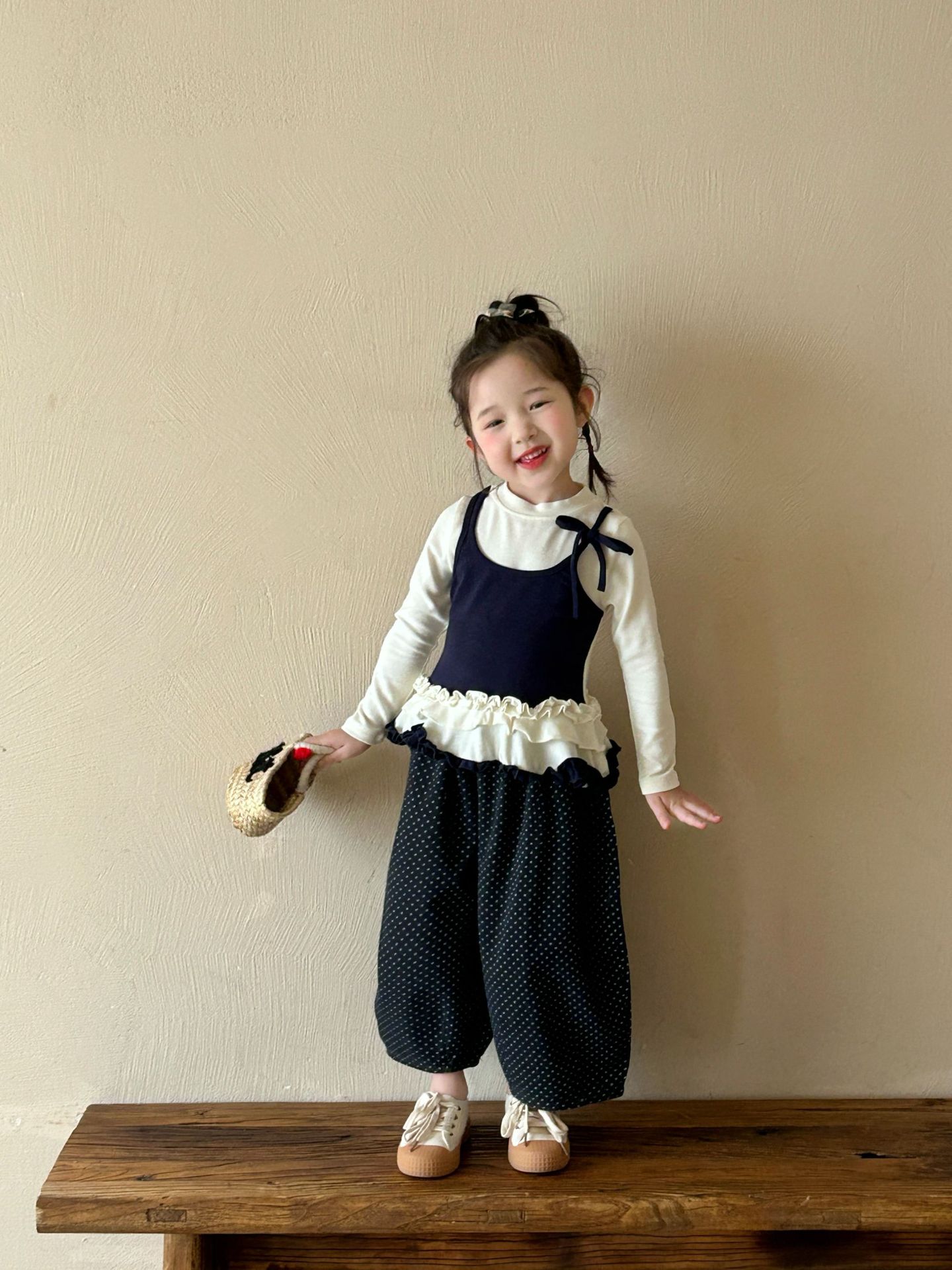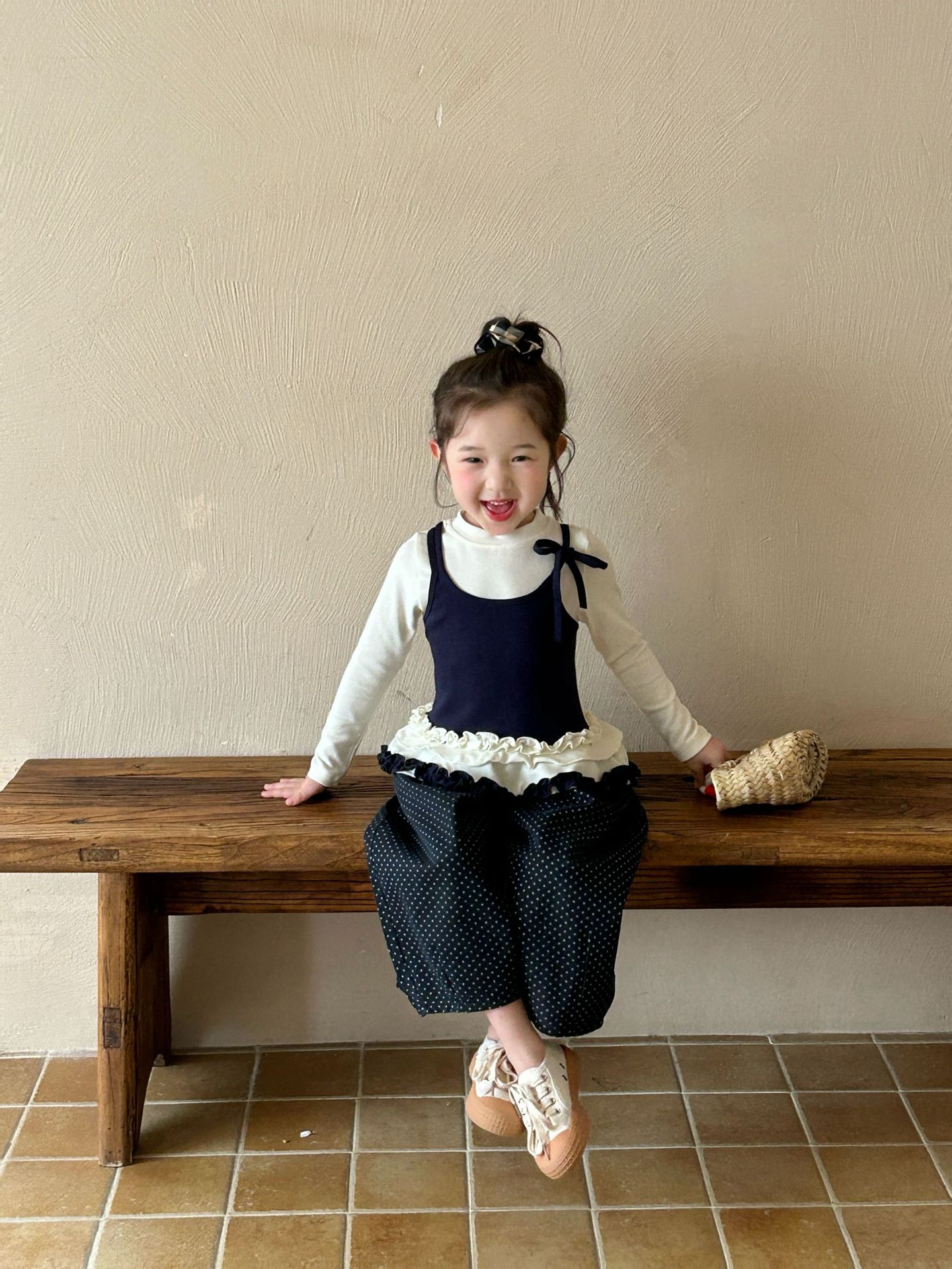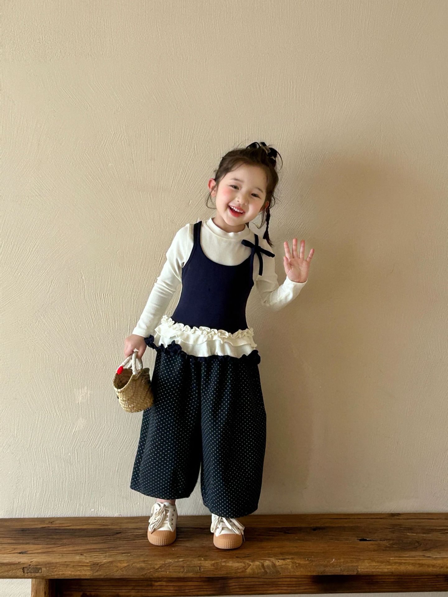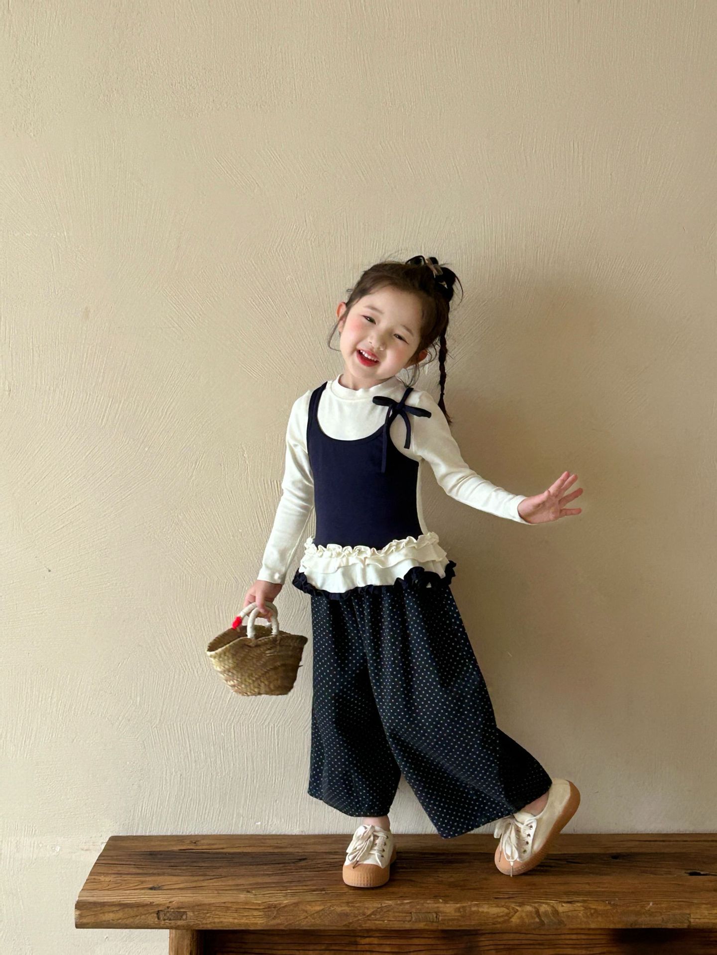 2025 가을 새로운 아동 의류 한국 스타일 아동 의류 소녀 발레 스타일 레이스 서스펜더 가짜 투피스 티셔츠 바닥 셔츠스토어 가기