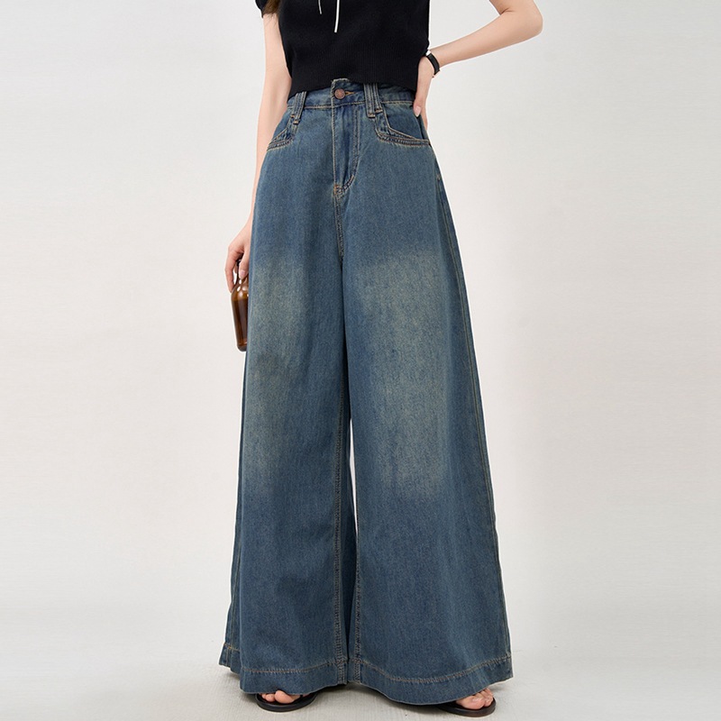 청바지 여성용 딥 레트로 디자인 대형 넓은 다리 느슨한 봄과 여름 높은 허리 스트레이트 바지 배 모양의 고기 커버 바지스토어 가기