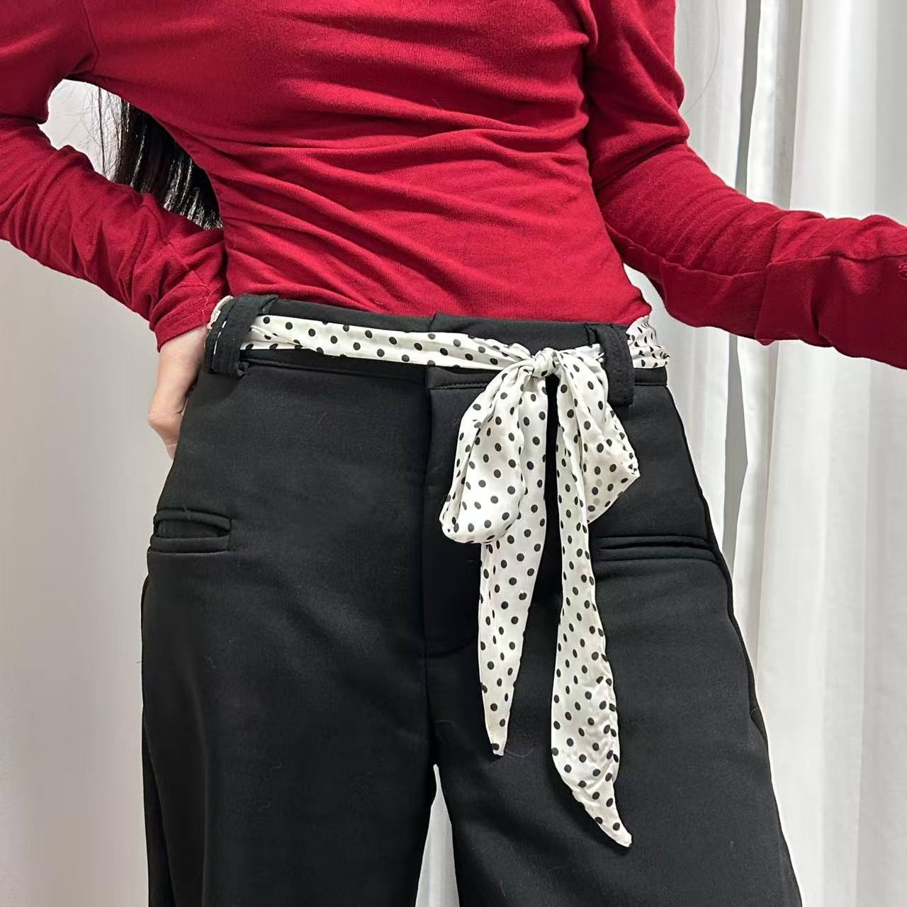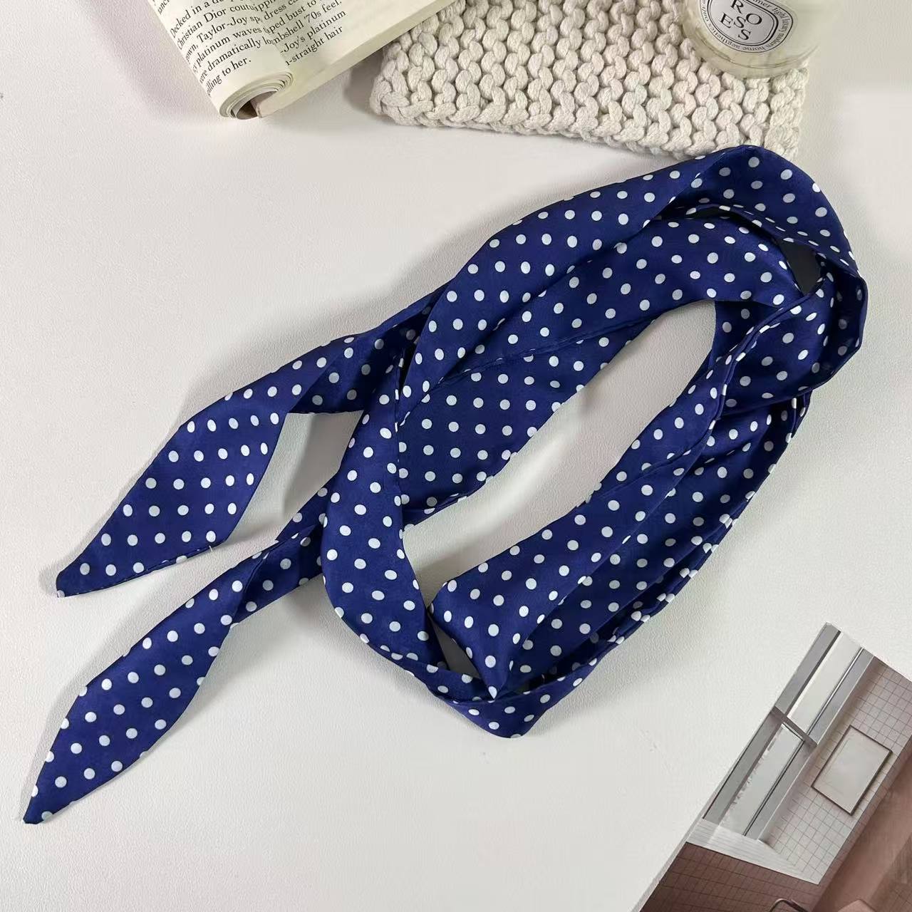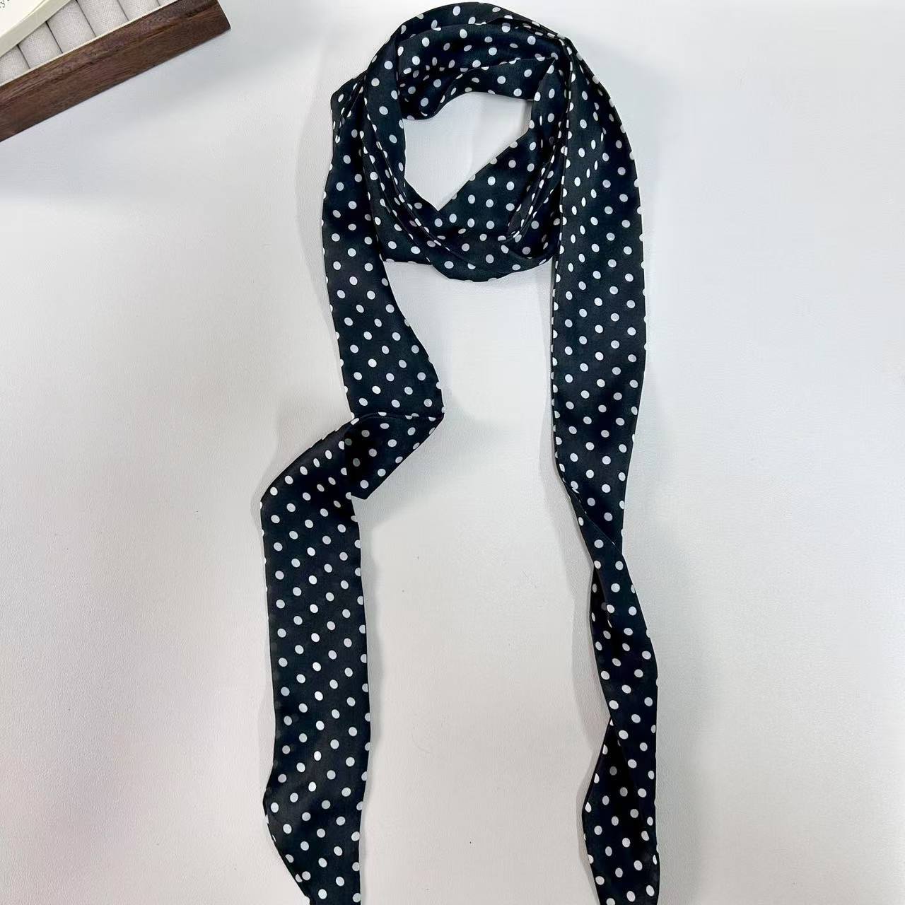 한국식 올매치 설문 조사 도트 실크 스카프 작은 긴 우아한 헤어 타이 백 리본 어울리는 셔츠 장식 스카프 손목 스카프스토어 가기